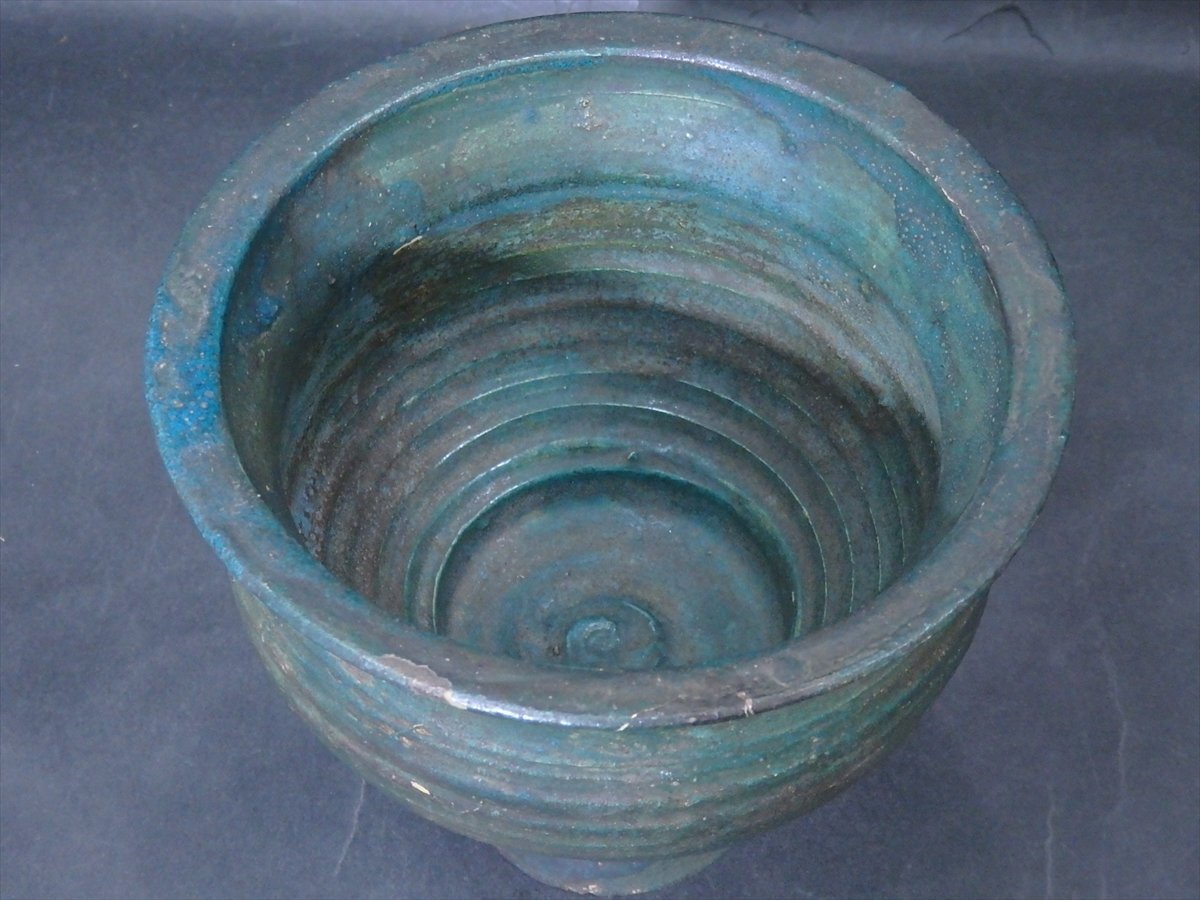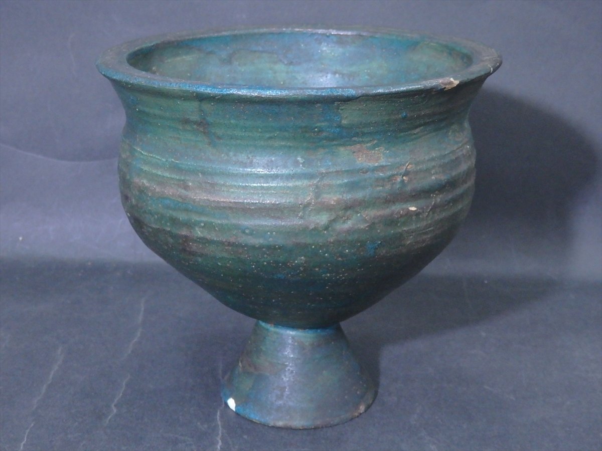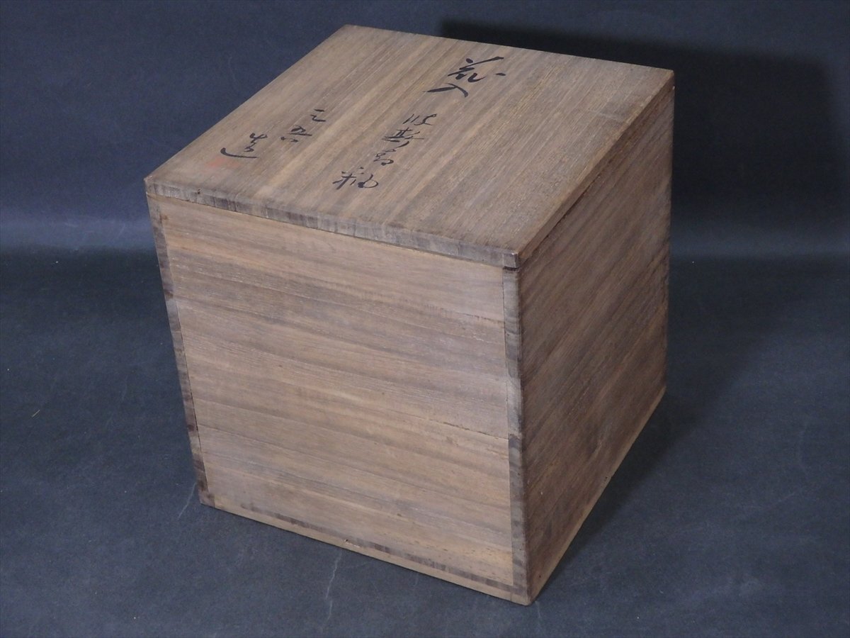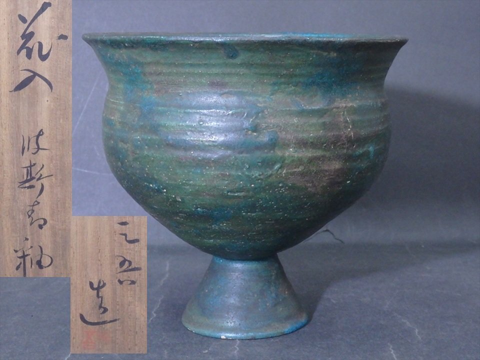 ★宇野三吾?聖杯型【花入 古い木箱入り】訳あり(欠け) 直径17.2cm 高さ15.7cm 花器 置物 宇野仁松の四男