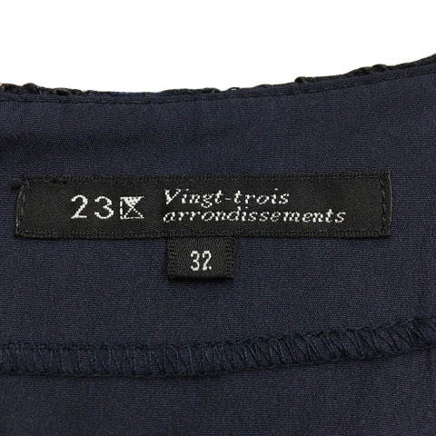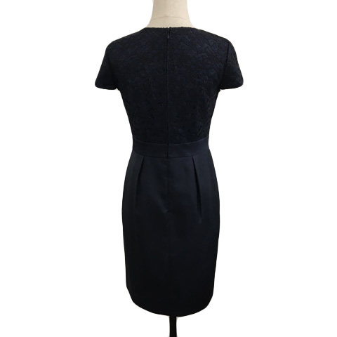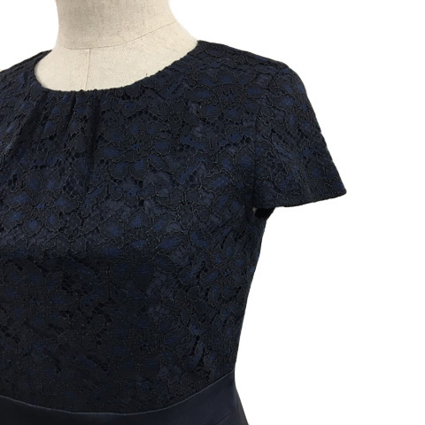 23区 オンワード樫山 ワンピース Iライン ミニ 切替 レース 半袖 32 紺 ネイビー レディース