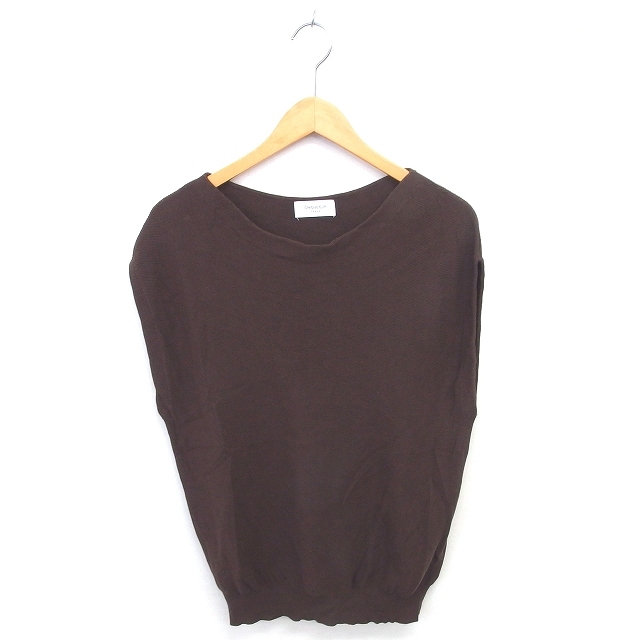 オペークドットクリップ OPAQUE.CLIP ニット セーター ボートネック 薄手 無地 シンプル ノースリーブ 38 M 茶 ブラウン /TT レディース