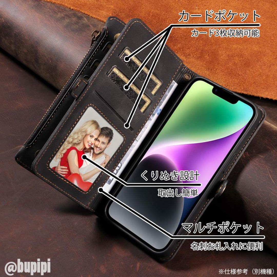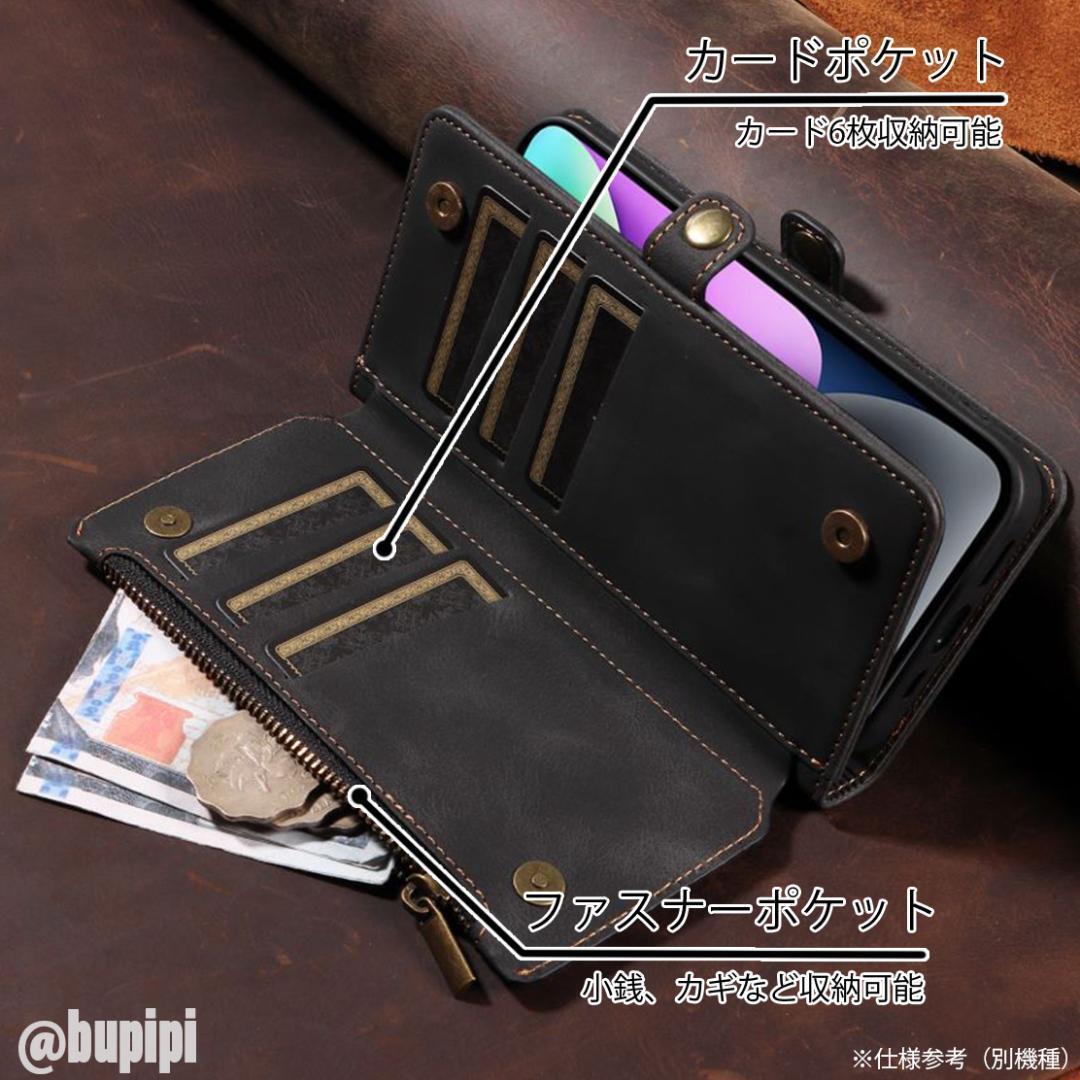 ■カラー:ブラック ■対象機種:iPhone13 ■カードポケット:9 ■お札ポケット:1 ■ファスナーポケット:1 ■素材: PUレザー、TPU ■カメラレンズ保護構造 ■スタンド機能あり 角度調整可 ■マグネットボタン式 ■衝撃吸収 ■ストラップ付き ■ワイヤレス充電可(厚めのケースのため、位置合わせが必要となります。) No.CPX008 | ||||||||||||||
