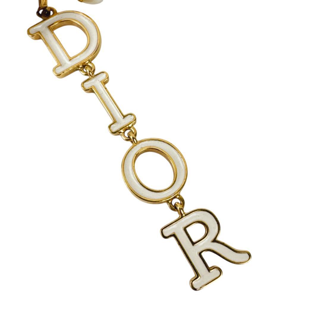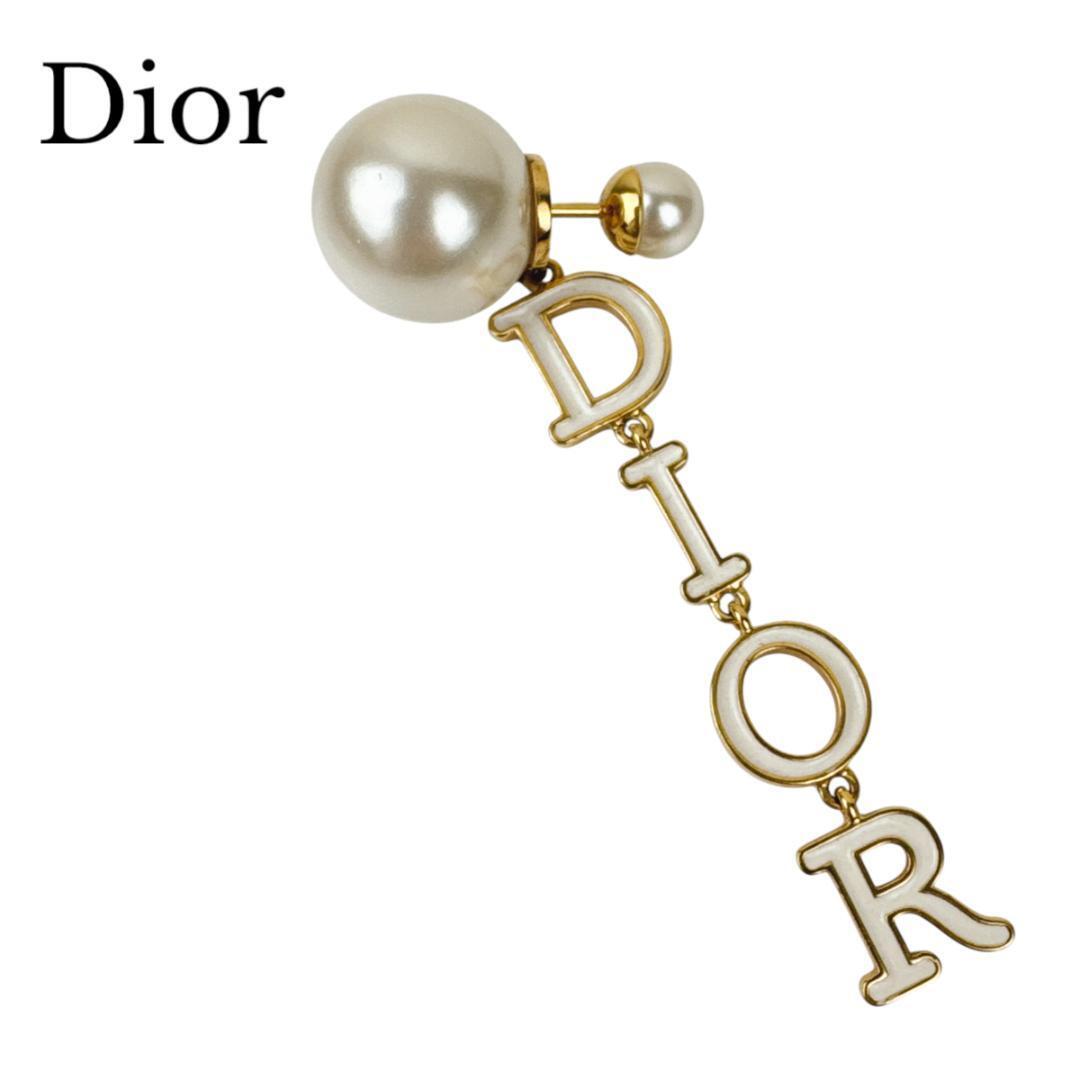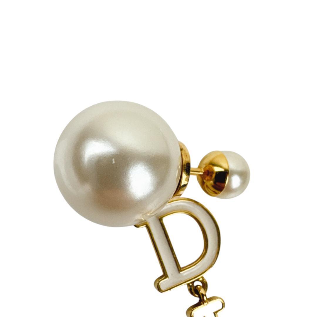 Christian Dior クリスチャンディオール ピアス ドロップ ロゴ トライバル フェイクパール 片耳 ホワイト ゴールド