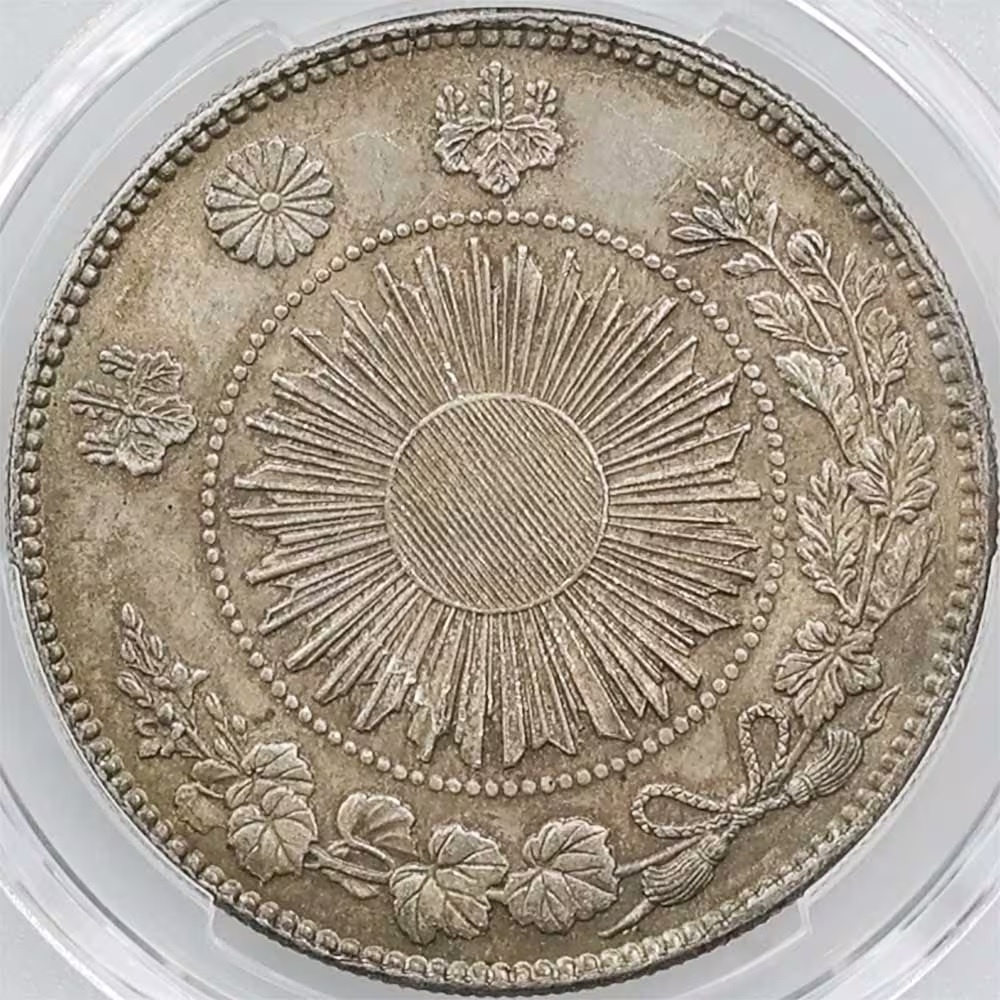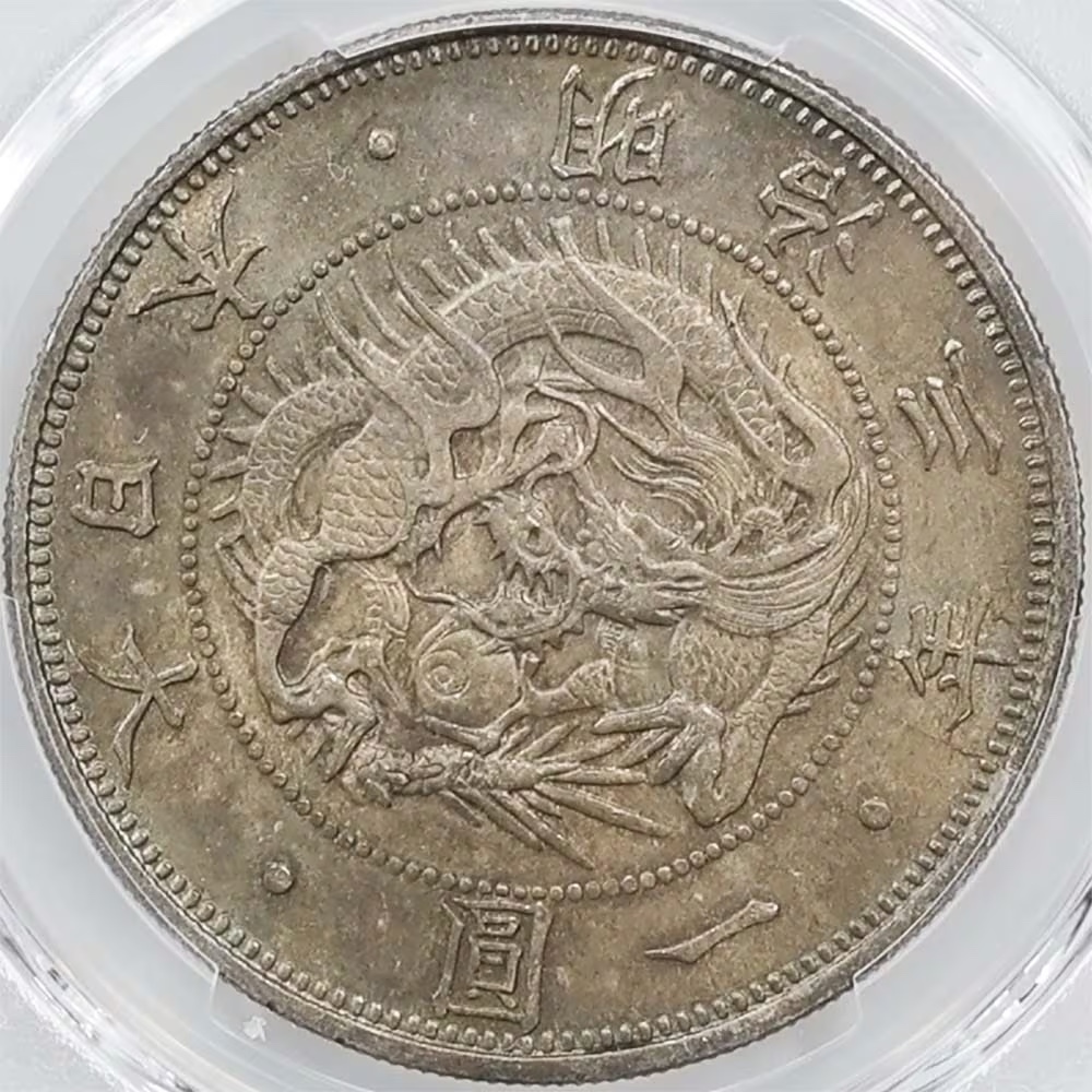 1870 日本 明治3年 1円銀貨 タイプ 3 欠貝円 有輪 ミントエラー 45度傾打 PCGS MS 64 未使用~完全未使用品