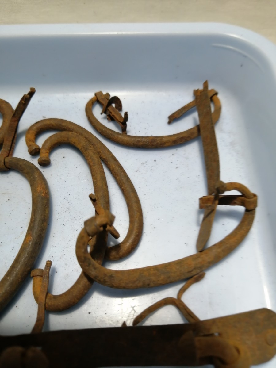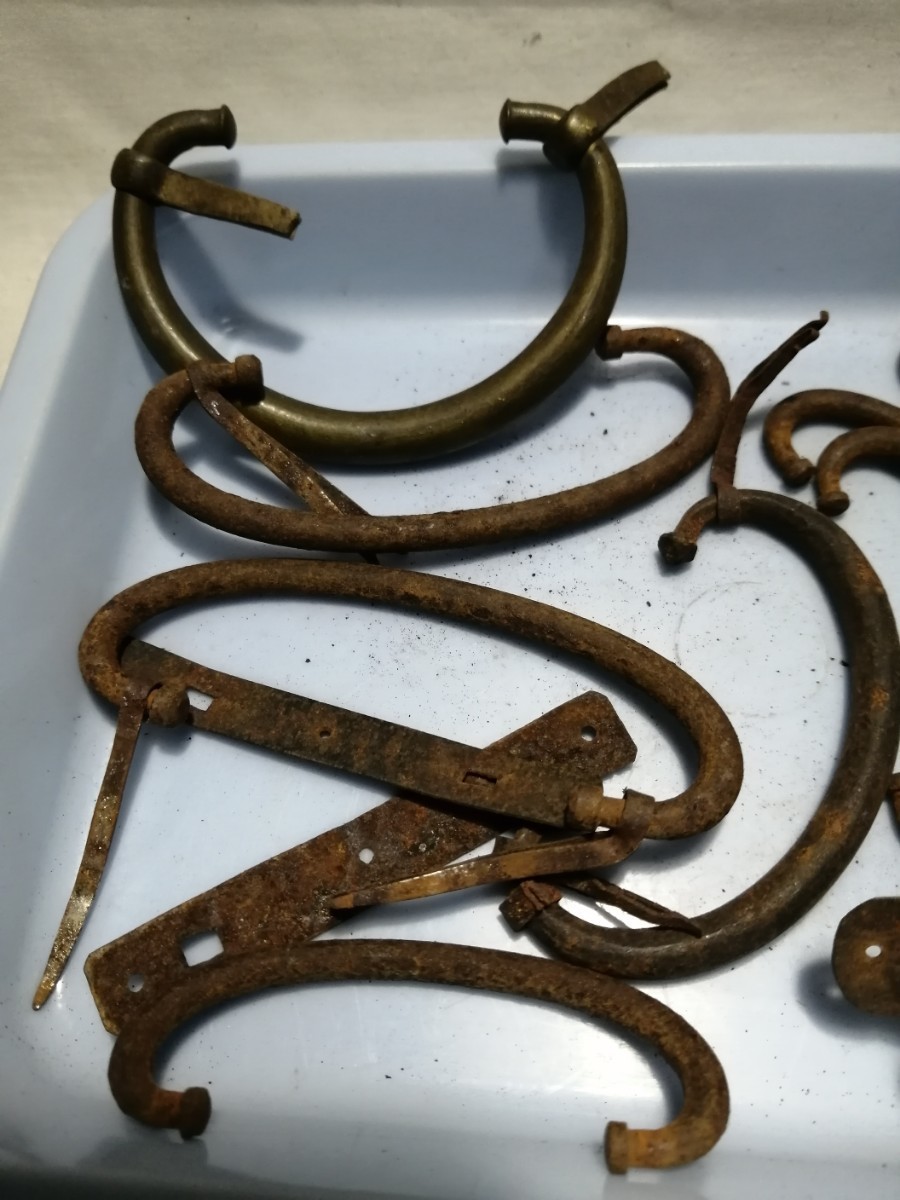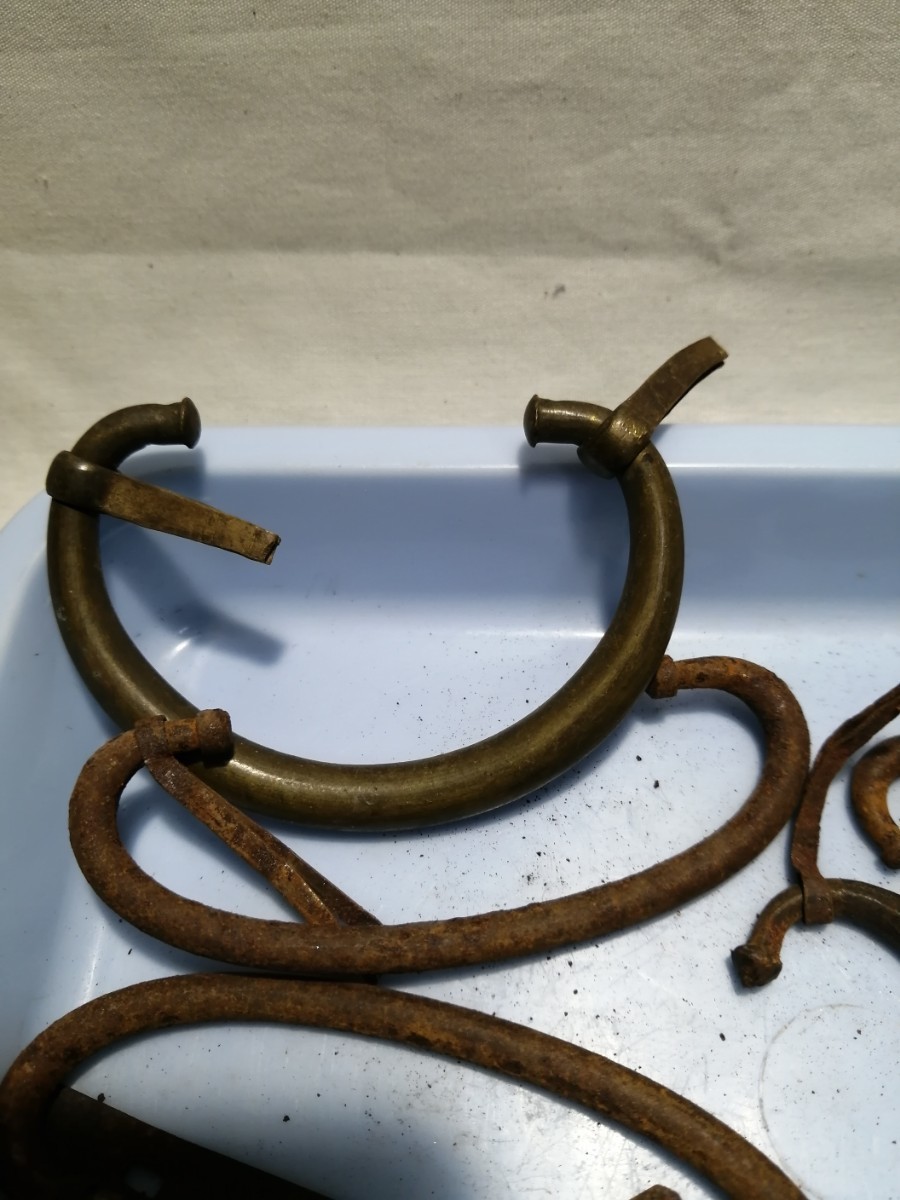 江戸から明治にかけての箪笥の引手10個です。大体が鉄製ですが真鍮製品が1つあります。