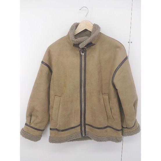 ■ mysty woman ミスティウーマン フェイクムートン ボア 長袖 ジャケット サイズF ブラウン レディース