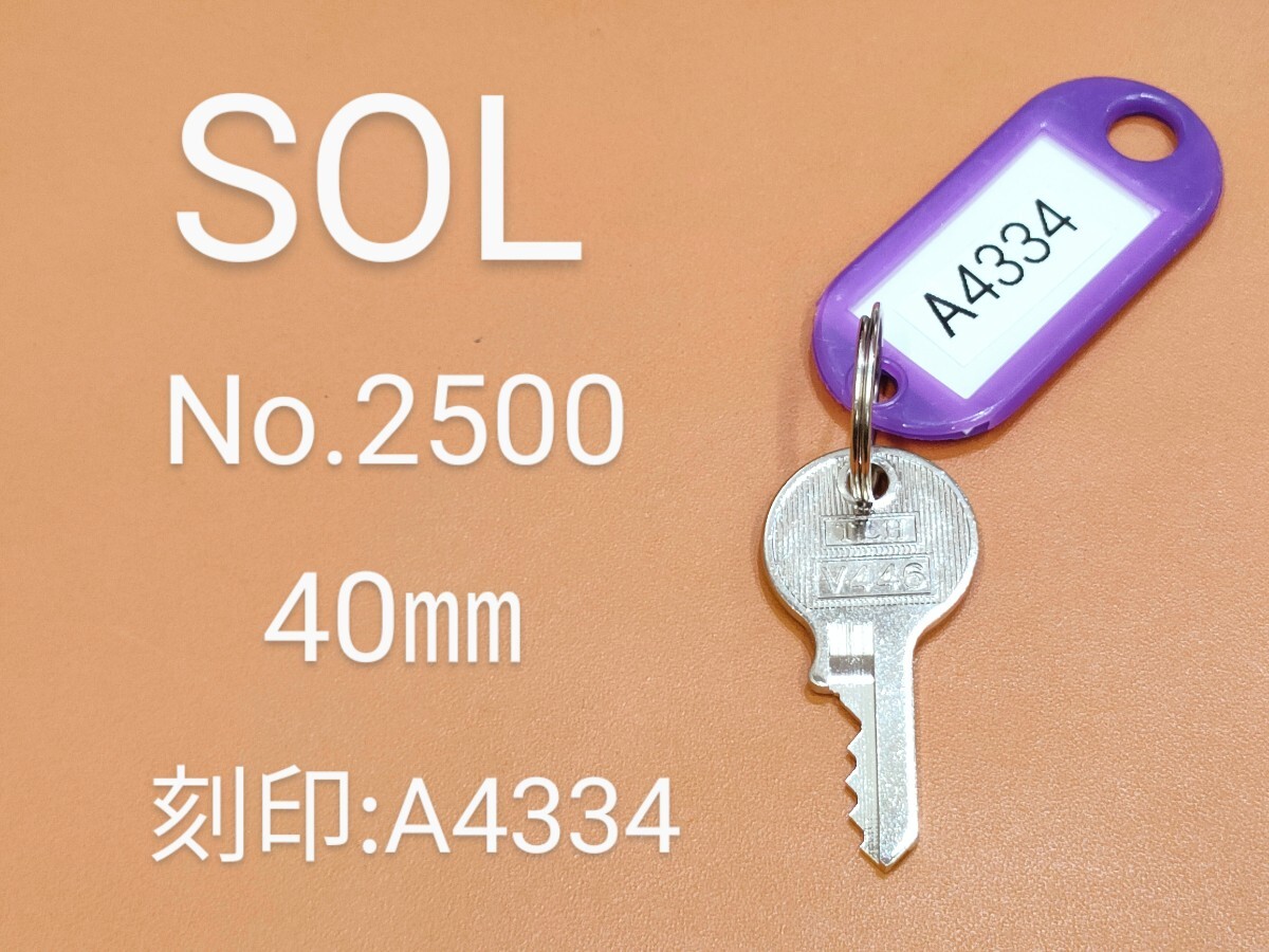 SOL、南京錠、合鍵1本【A4334】 同一キー、ソル、No.2500-40mm、A4334番、ネコポス便匿名無料発送、sol、カギ、南京錠カギ、ソルカギ