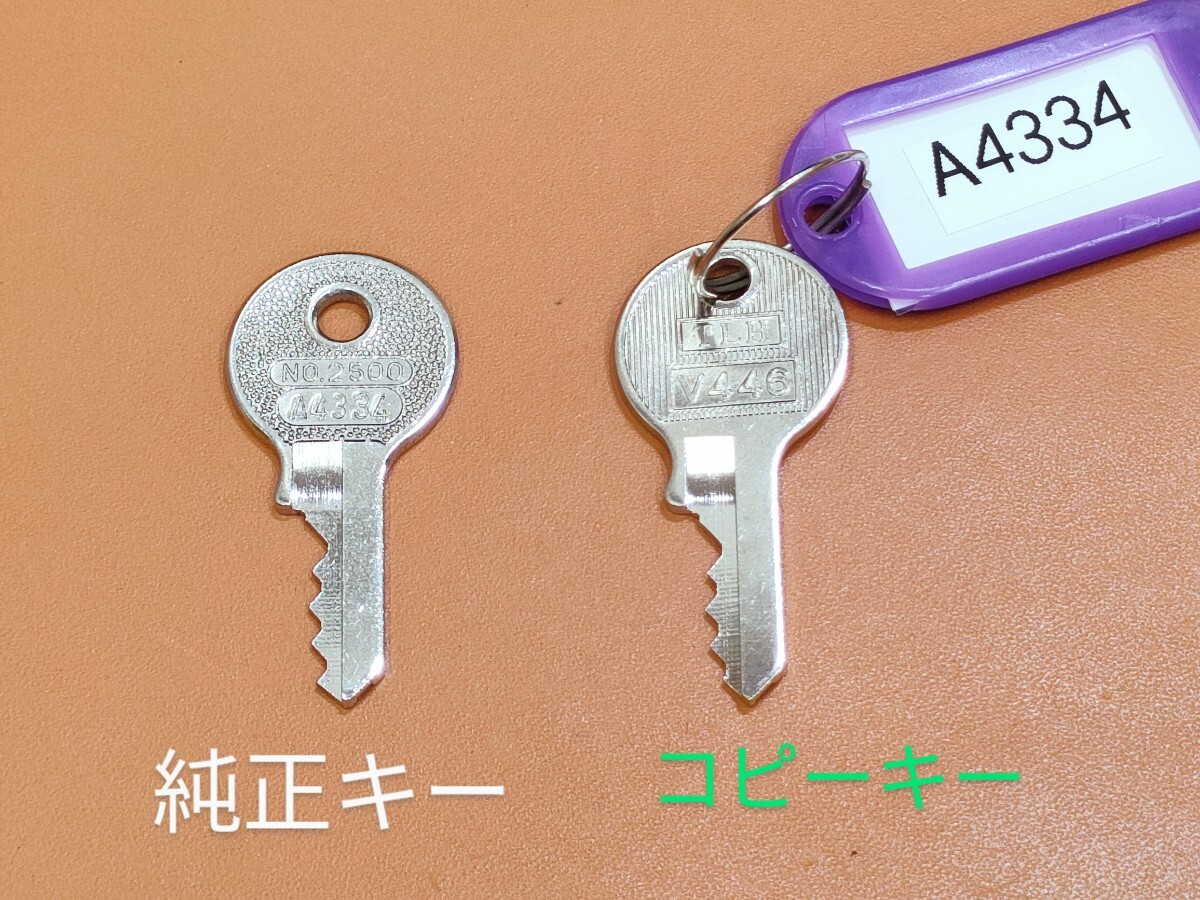 A4334の合鍵1本と、カギ番号が記載したキーホルダー付き※キーホルダー、色お任せ。