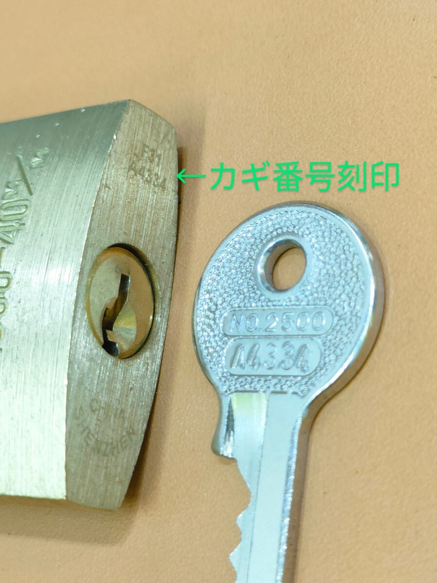 南京錠(No.2500-40㎜)のカギの挿し込み口に『A4334』の刻印がしている南京錠のみ解錠できます。