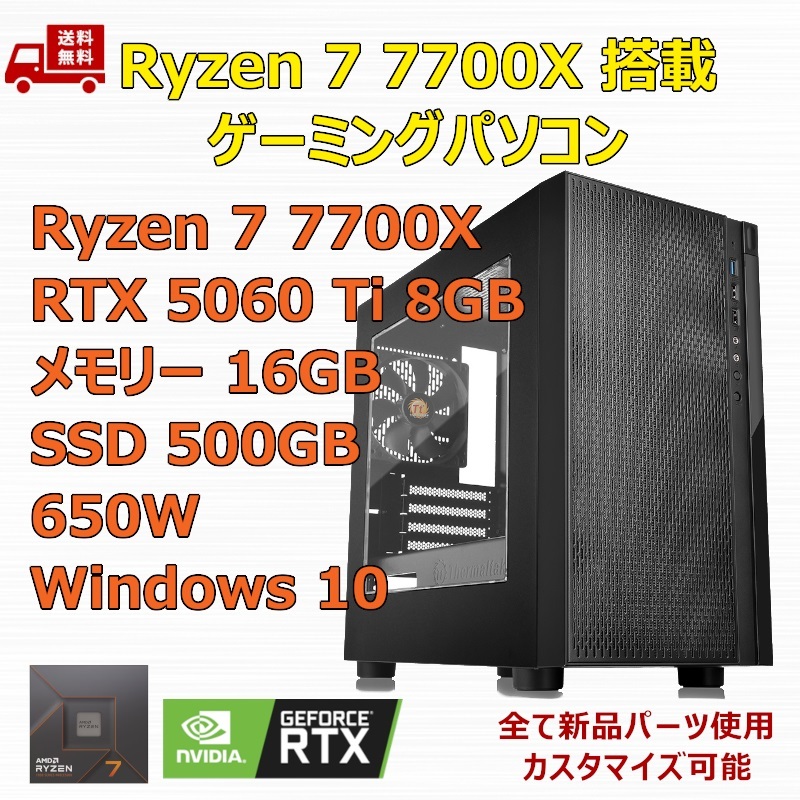 【新品】ゲーミングパソコン Ryzen 7 7700X/RTX5060Ti/A620/M.2 SSD 500GB/メモリ 16GB/650W