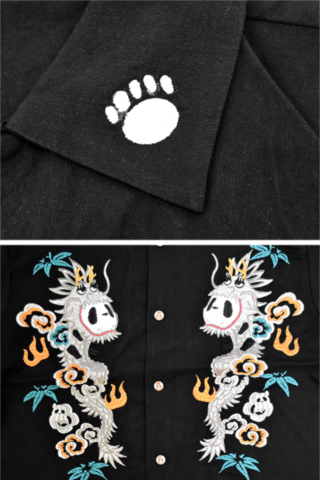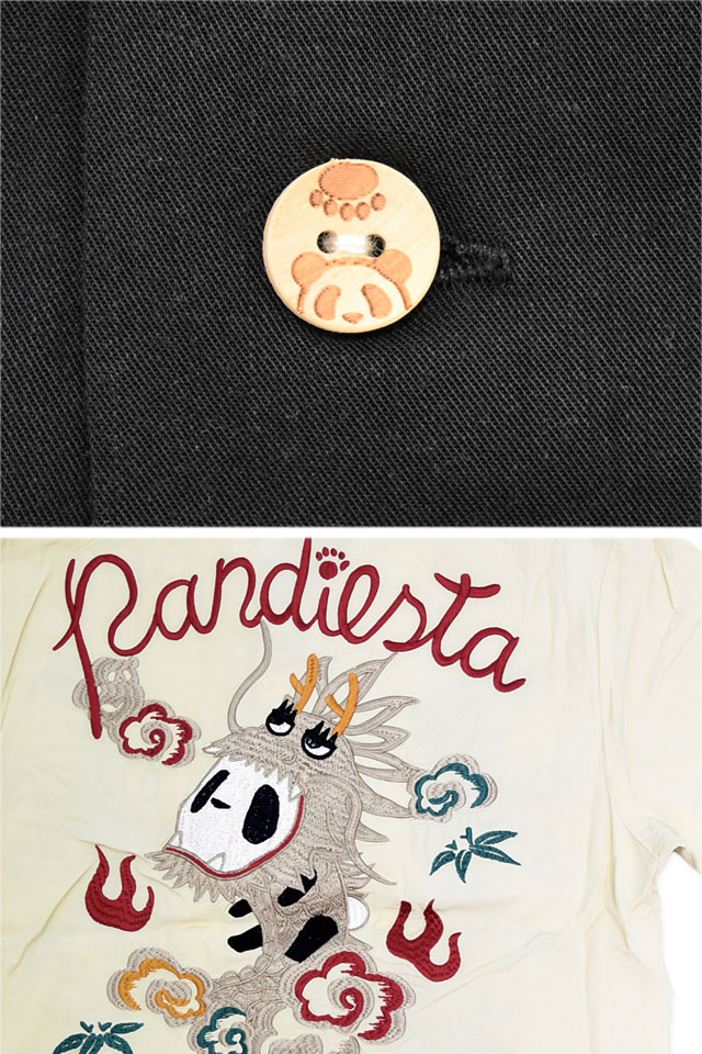 和柄ブランド【錦】の姉妹ブランドとして誕生した、お茶目なパンダをモチーフとした【PANDIESTA JAPAN】より「パンドラゴン総刺繍半袖シャツ(585202)」のご紹介です。 今や、錦の定番モチーフとなった「錦PANDA」!! 龍のようで、パンダのよう。 その名もパンドラゴン。 背中にはパンドラゴンを大胆に刺繍しました。 フロントには対になるような形でデザインされています。 ボタンにはパンダと足跡が刻印されたものを採用し、細かい部分にまで拘りました。 ボディーにはてろんとしたレーヨン素材を使用。 | |||||||||||||||||||||||||