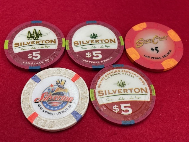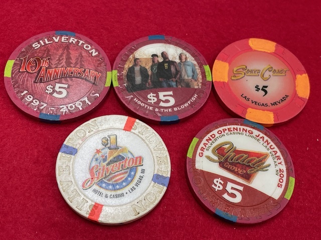 C-36現状品 チップ 入手困難 本場海外 ラスベガスなど ヴィンテージ カジノチップ $5など ポーカーチップ ゴルフマーカー5枚セット