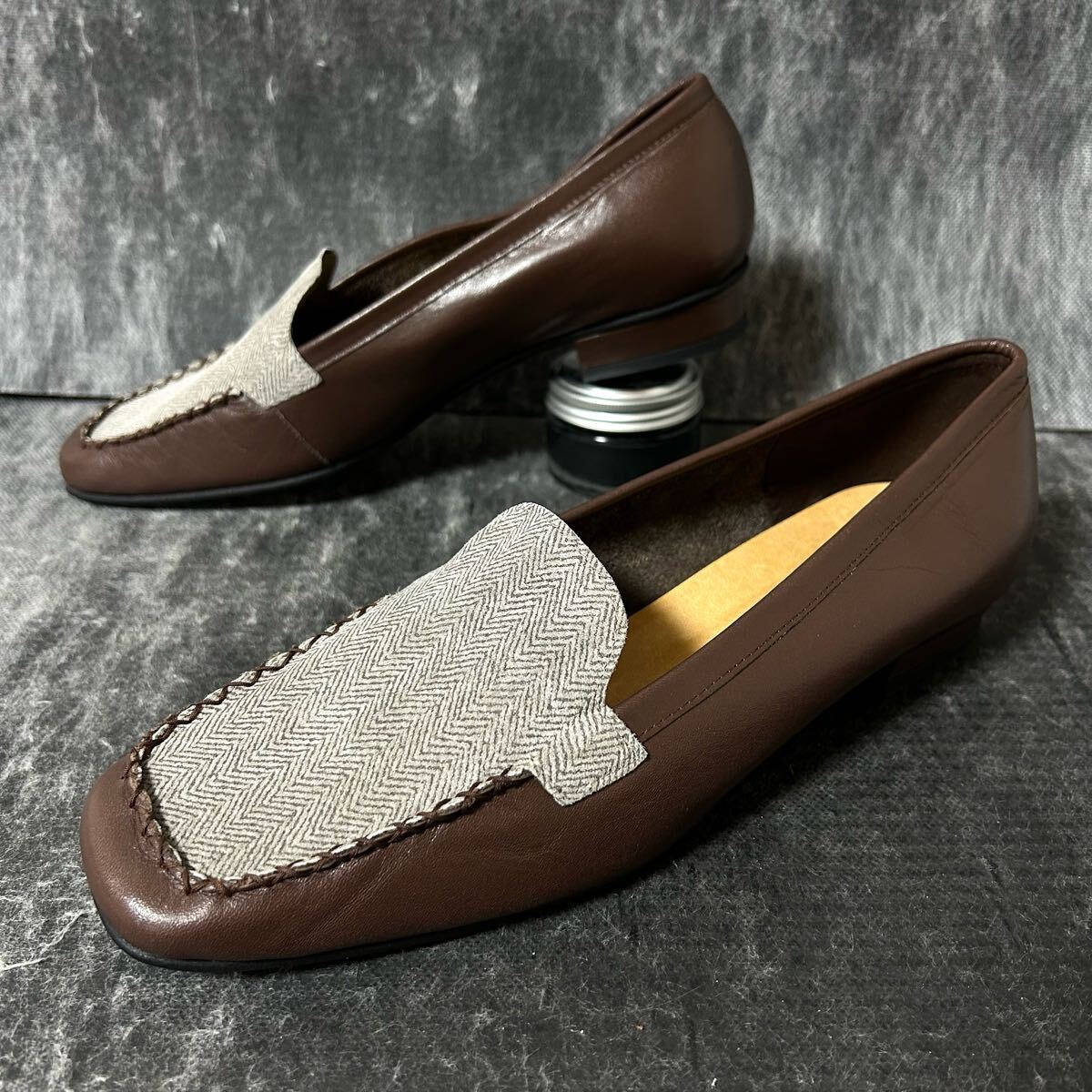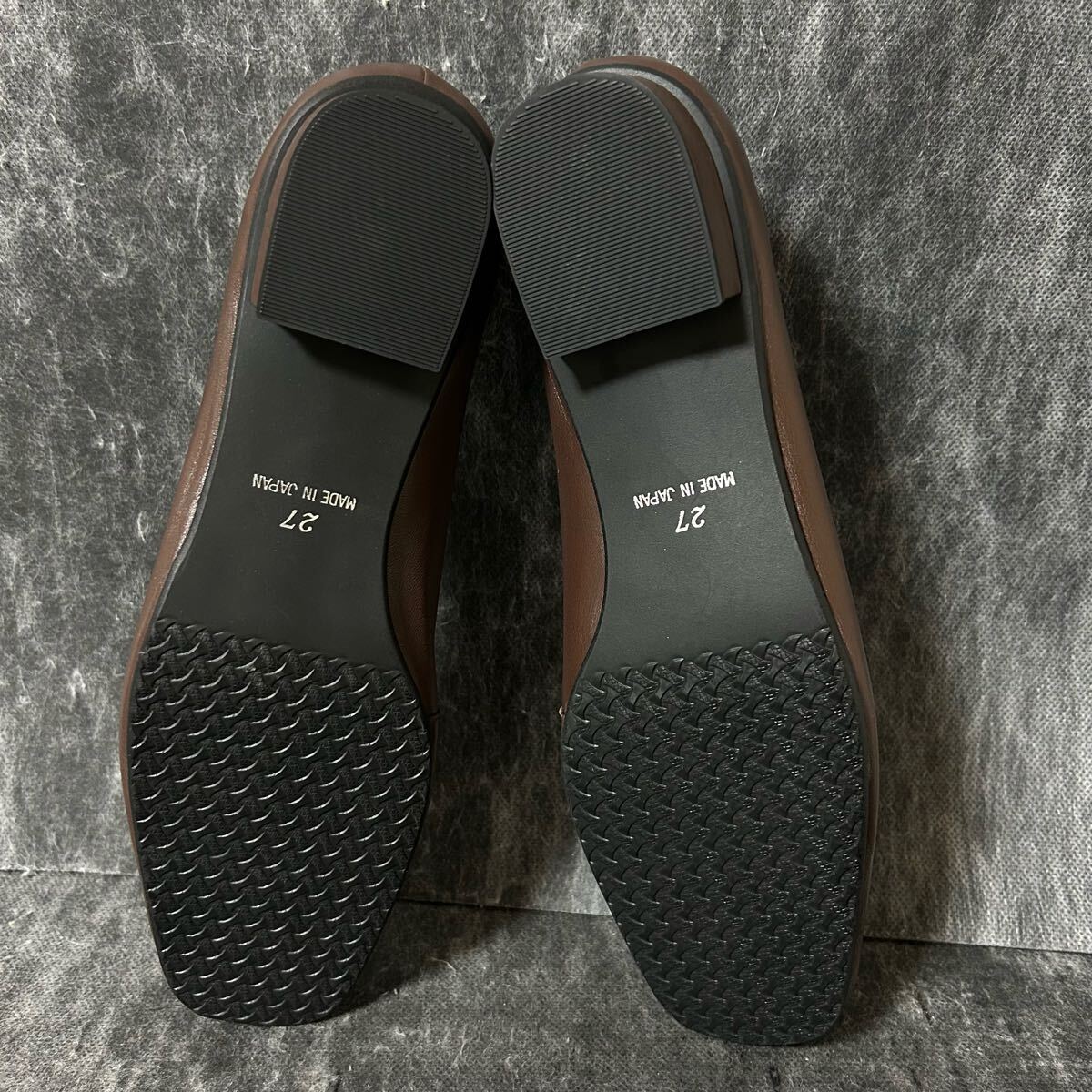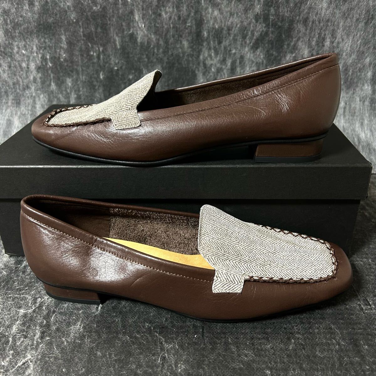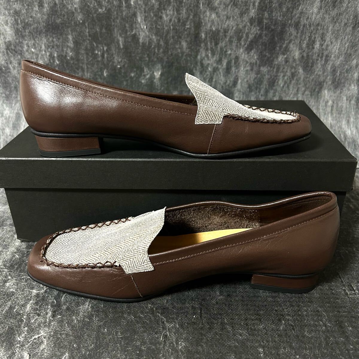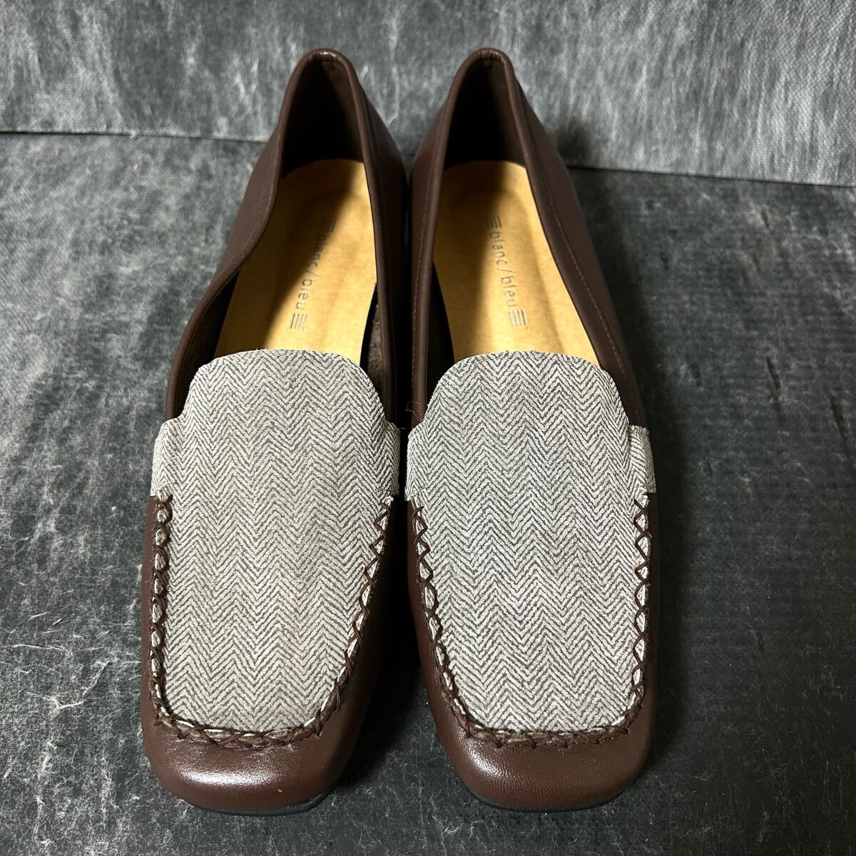 【未使用/大きいサイズ】 ¥20,900- blanc/bleu ブランブルー #8284 ローファー スクエアトゥ 本革 グレージュ レディース size27