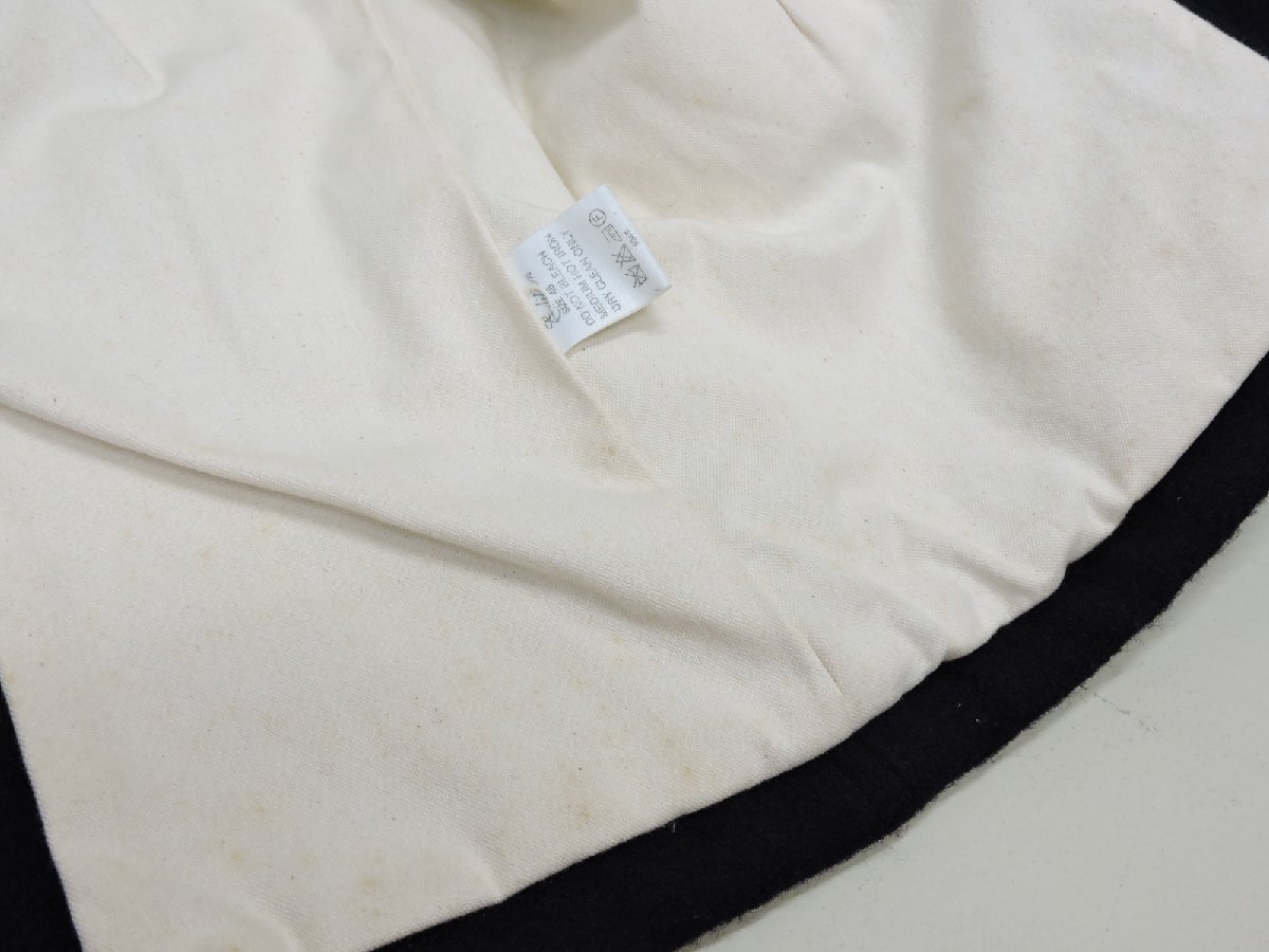 裏地にシミ黄ばみはありますが、破れ等の大きなダメージはありません。色味は黒に近いダークネイビーとなります。
