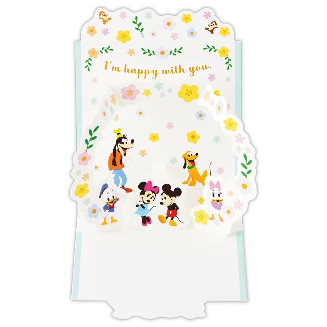 ディズニー ミニカード 多目的 立体カード DN仲間たち フラワーアーチ 日本ホールマーク お礼 お祝い キャラクター メッセージ