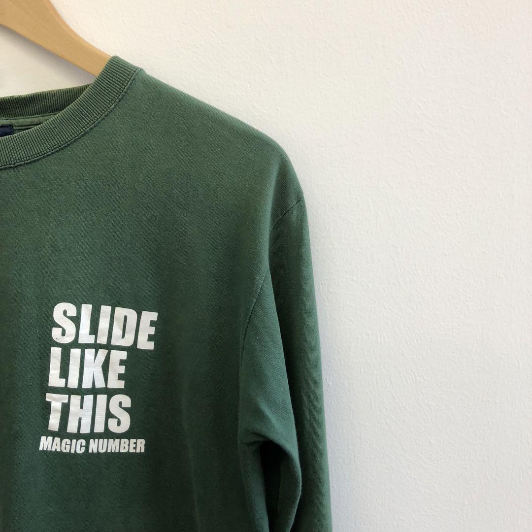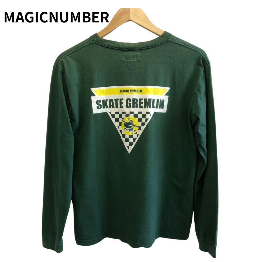 マジックナンバー Tシャツ 長袖 カットソー グリーン デカロゴ 丸首 プリント
