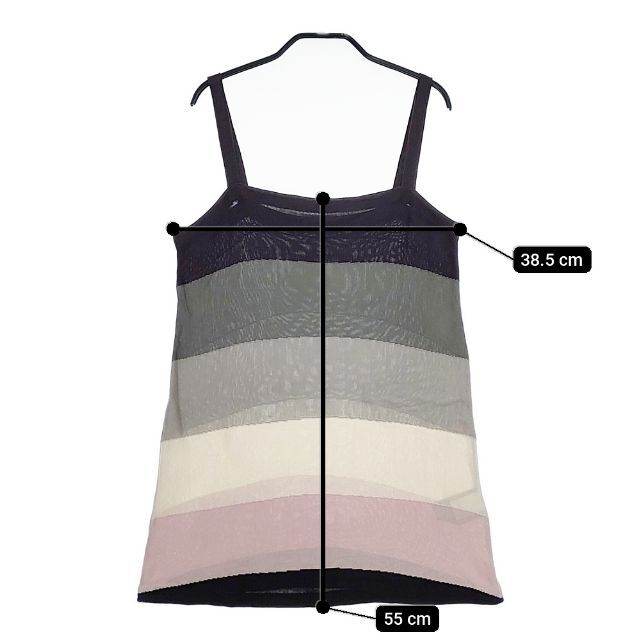 | 実寸サイズ | 着丈:約55cm 身幅:約38.5cm 備考 肩紐は調節不可 ※記載以外のサイズが合わないことを理由とした返品はできませんので、 記載部分以外で実寸サイズの気になる箇所があれば必ず購入前にご質問ください。 |