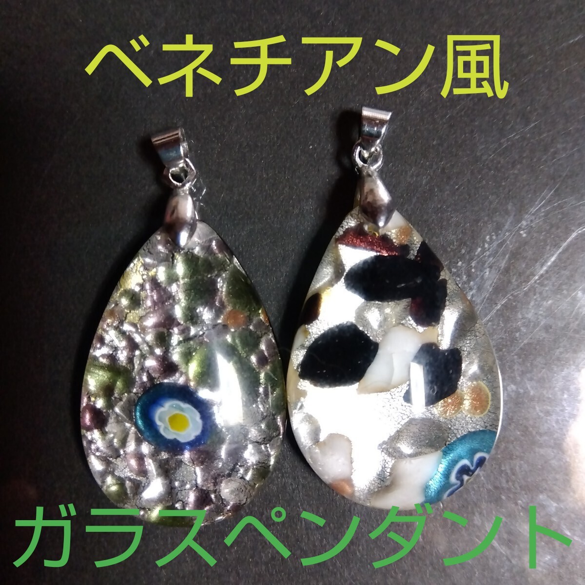 ベネチアン風★VG-55★ガラス★ペンダント・トップ★2個セット◎廃盤商品に付き入手困難《同梱・まとめて取引可能》