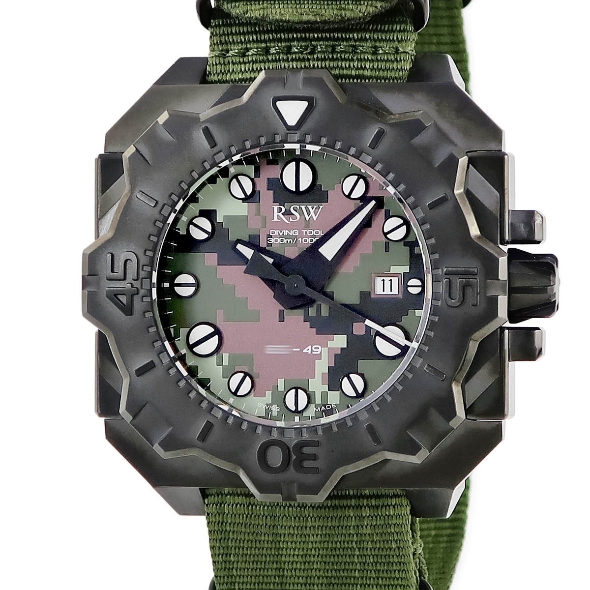 RSW ダイビングツール カモ 7050.1.R1.95.00 未使用 迷彩 デジカモ グリーン ブラックPVD加工 限定 自動巻き