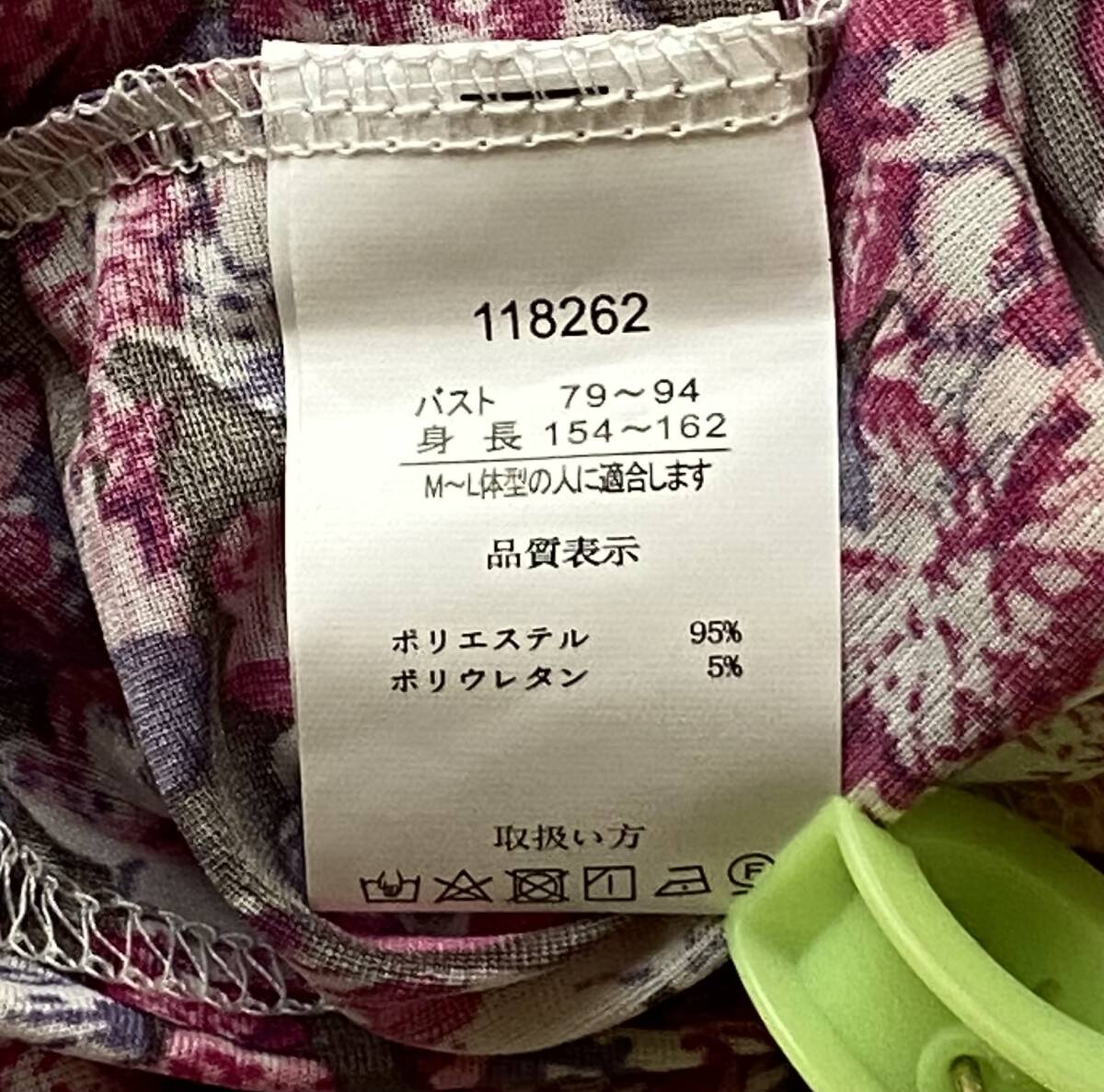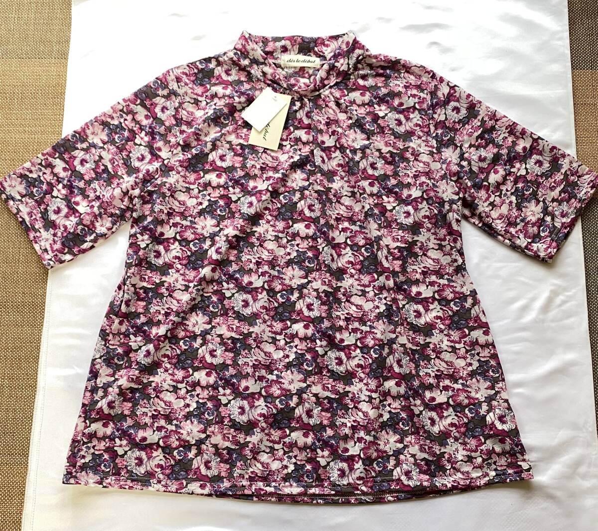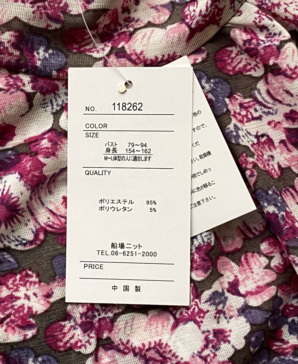 【新品】【送料込み】【M~L】五分袖ニットチュニック ピンク系花柄