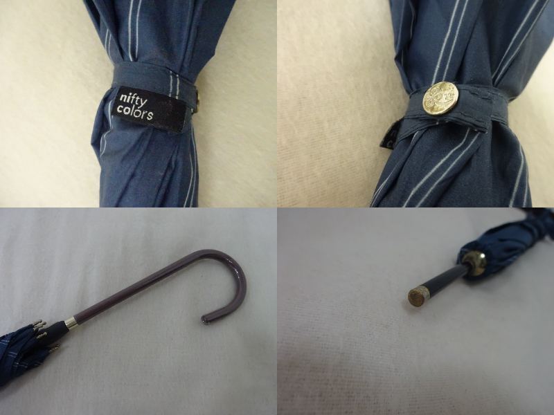 | (せ-A1-1078)nifty colors ニフティカラーズ 長傘 ジャンプ式 紺色 青 ブルー ストライプ 全長約86.5cm 半径約54cm 中古 | |