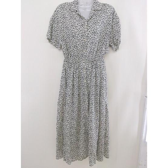 ◇ LOWRYS FARM ローリーズファーム 総柄 半袖 ロング ワンピース サイズF ホワイト系 ブラック系 レディース