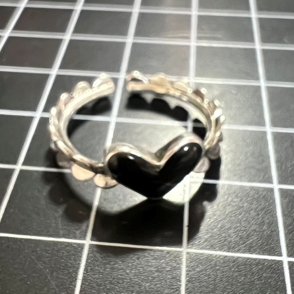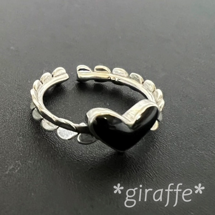 A912 匿名配送 指輪 レディース ハート リング s925 シルバー フリーサイズ サイズ調節可能 可愛い ブラック 黒