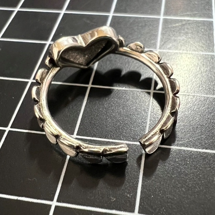 完全に閉じていないフリーサイズのオープンリングのため、開閉することで多少のサイズ調節が可能です。