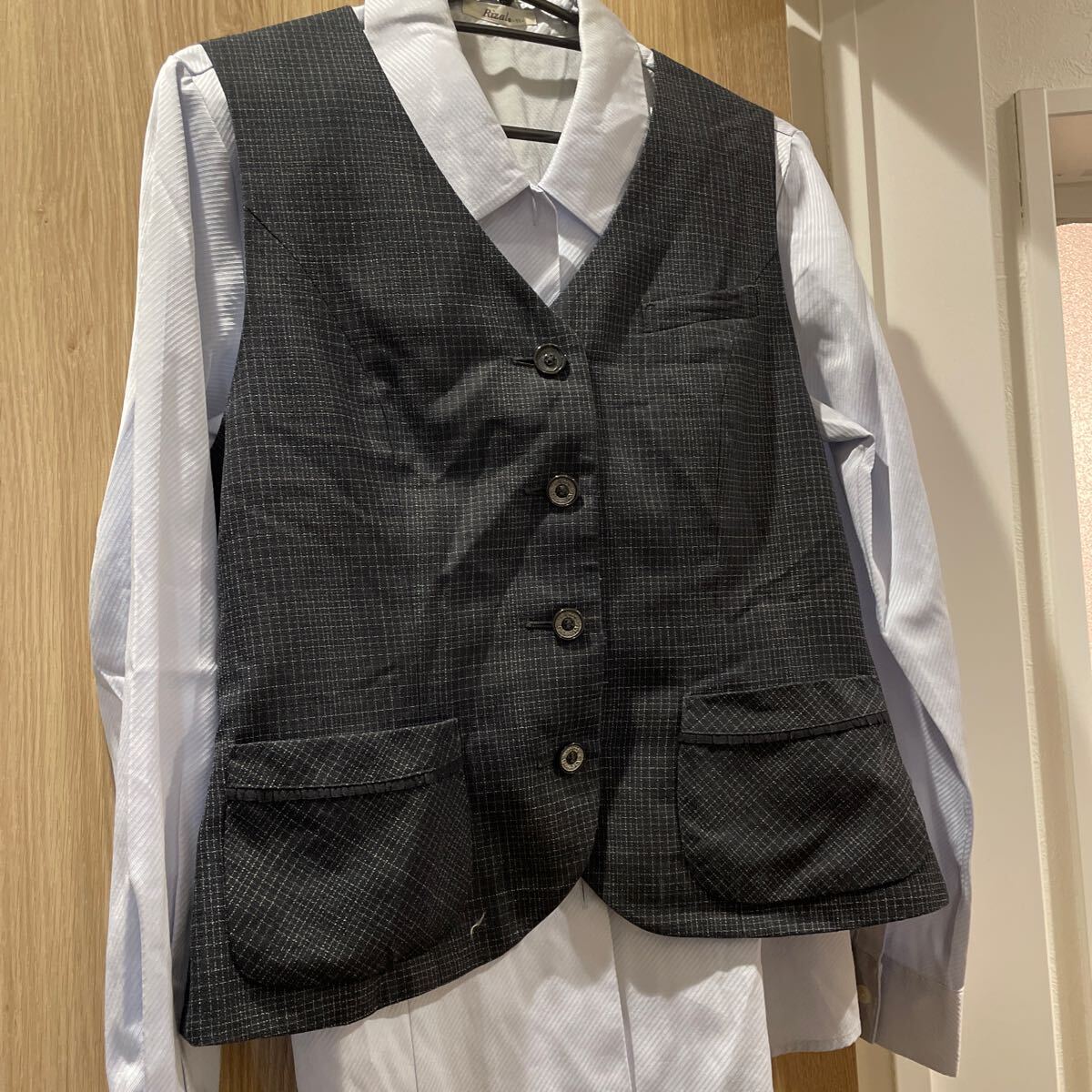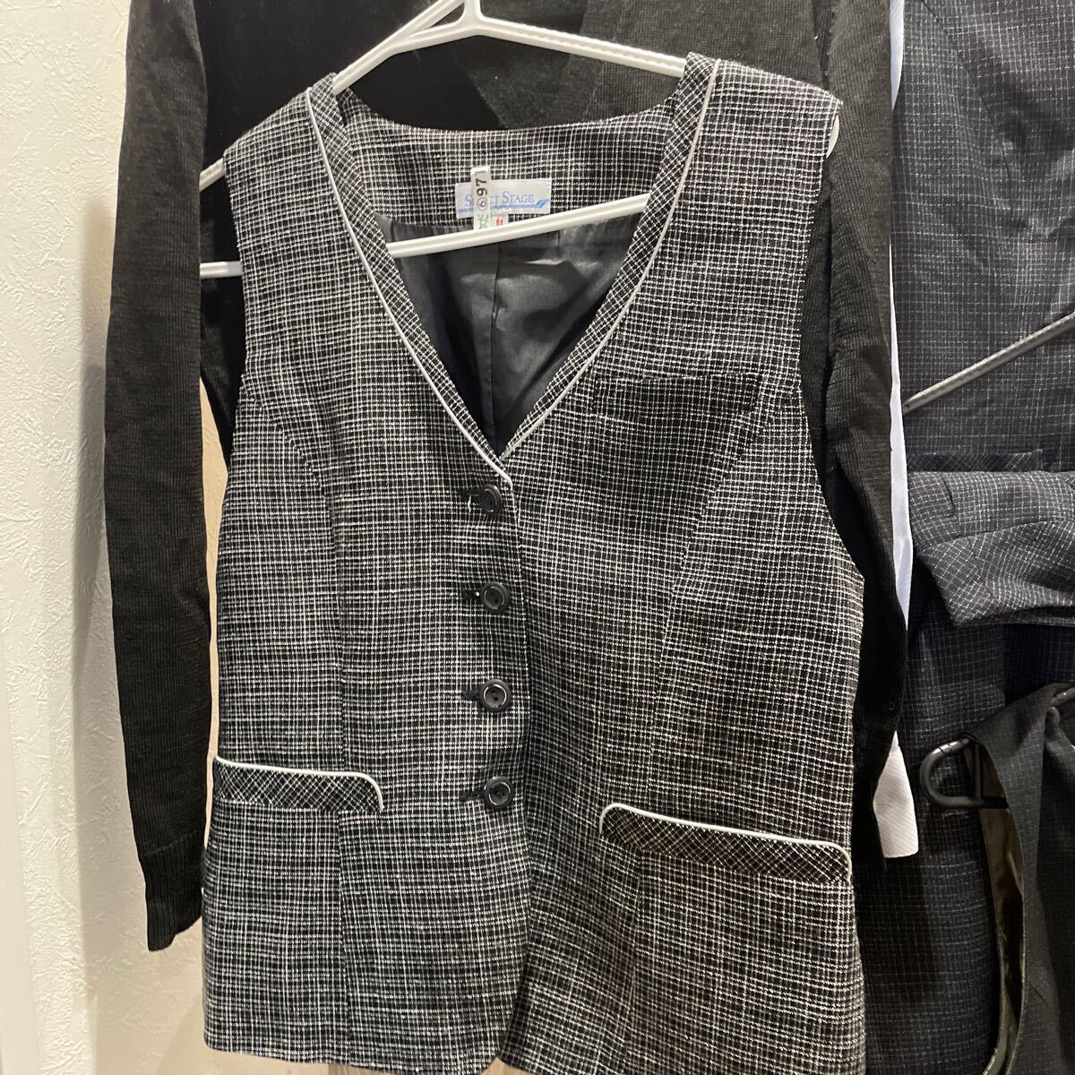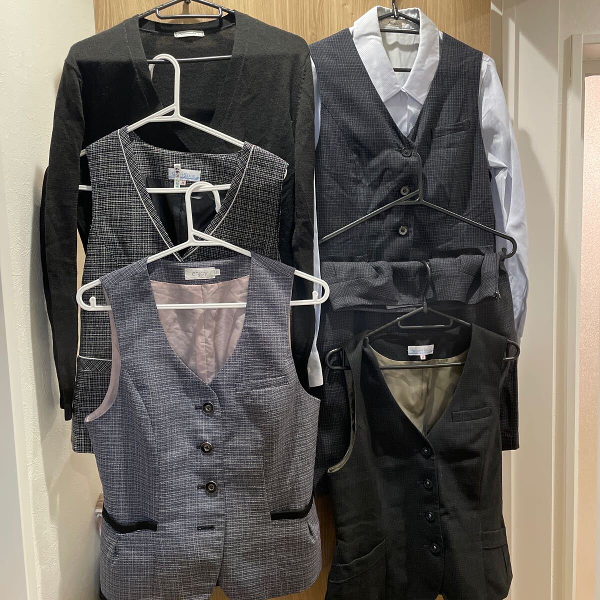 サイズ:ベスト、ベスト、ベスト、ベスト、ブラウス、カーディガン、スカートの7点。全て11Lサイズ