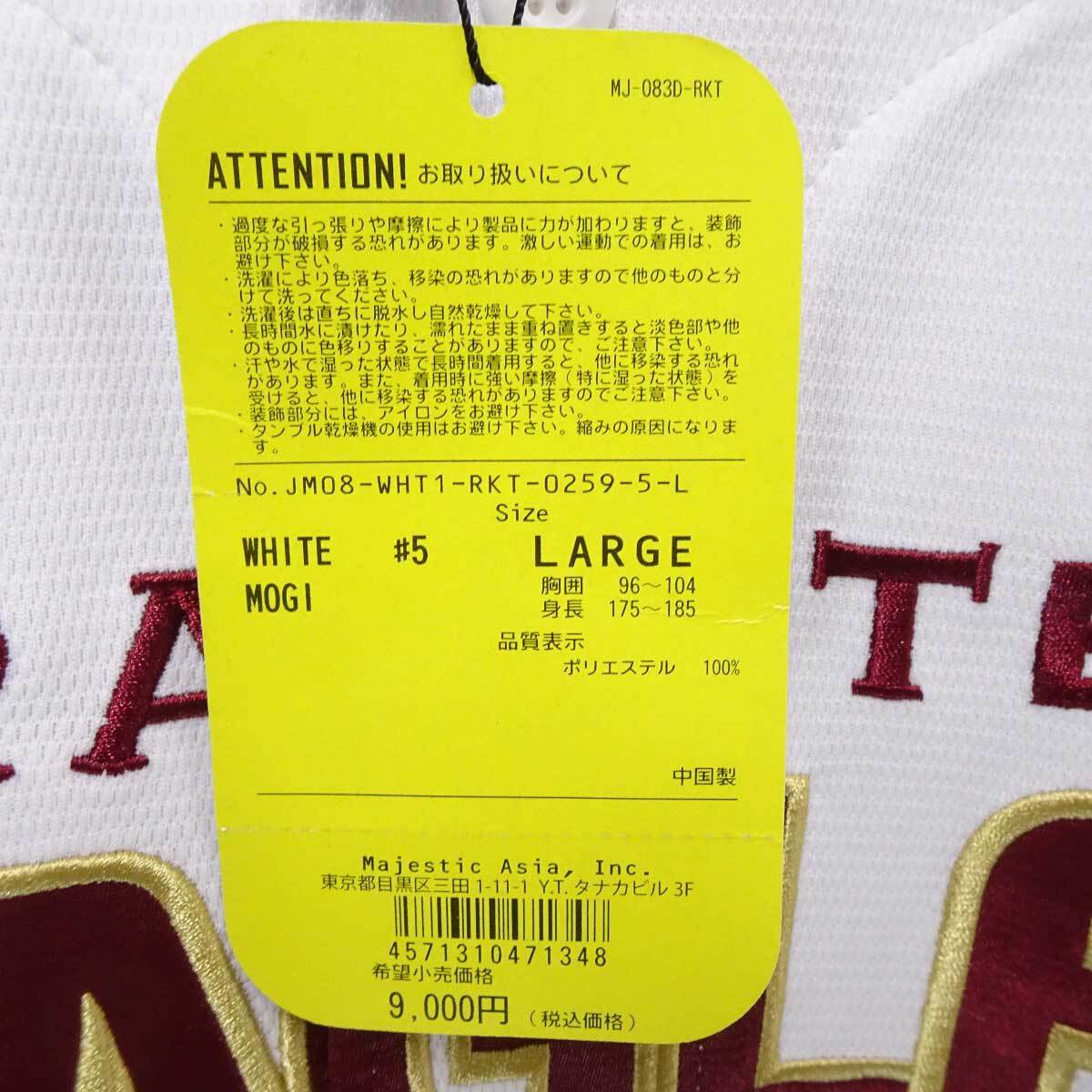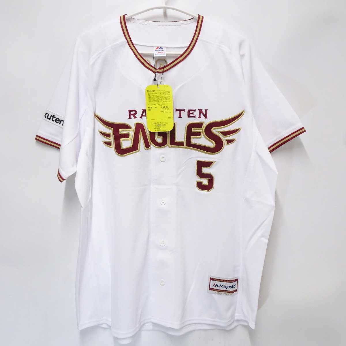 | ※商品は画像にあるものがすべてとなります。 【仕様】 ブランド:マジェスティック タイプ:東北楽天ゴールデンイーグルス ユニフォーム ホーム #5 茂木栄五郎 表記サイズ:L 身幅:約59cm 着丈:約74.5cm 素材:ポリエステル100% |