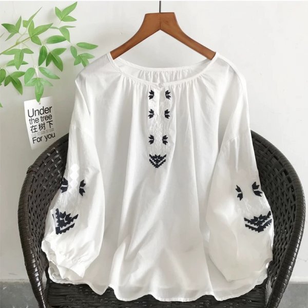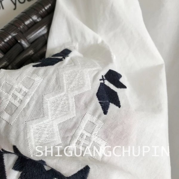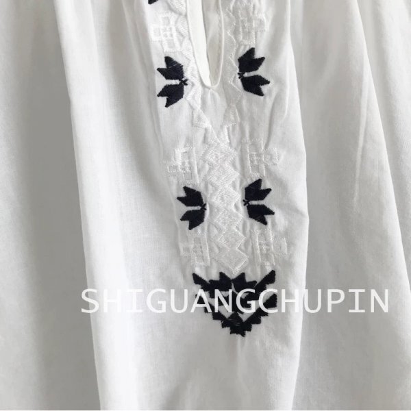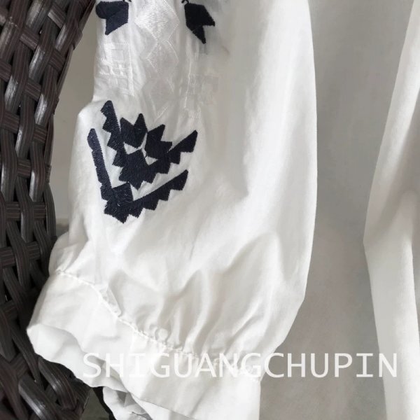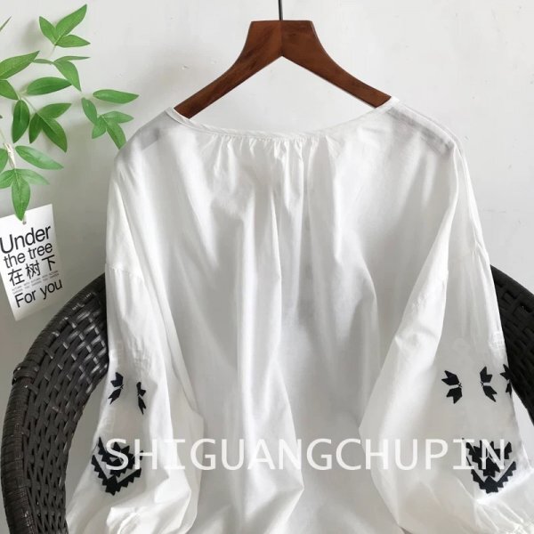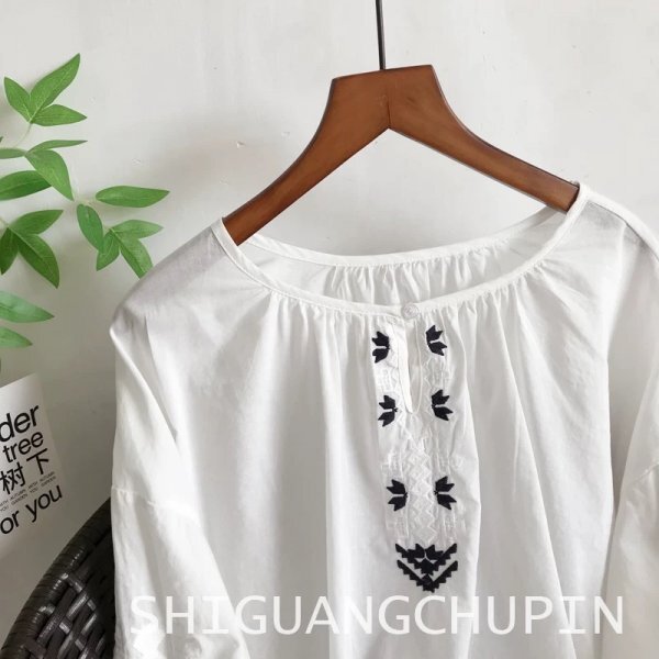 sg 0704 刺柄 ゆったり フリーサイズ ワイシャツ チュニック トップス 綿100% 大人可愛 ナチュラル 純色 ホワイト