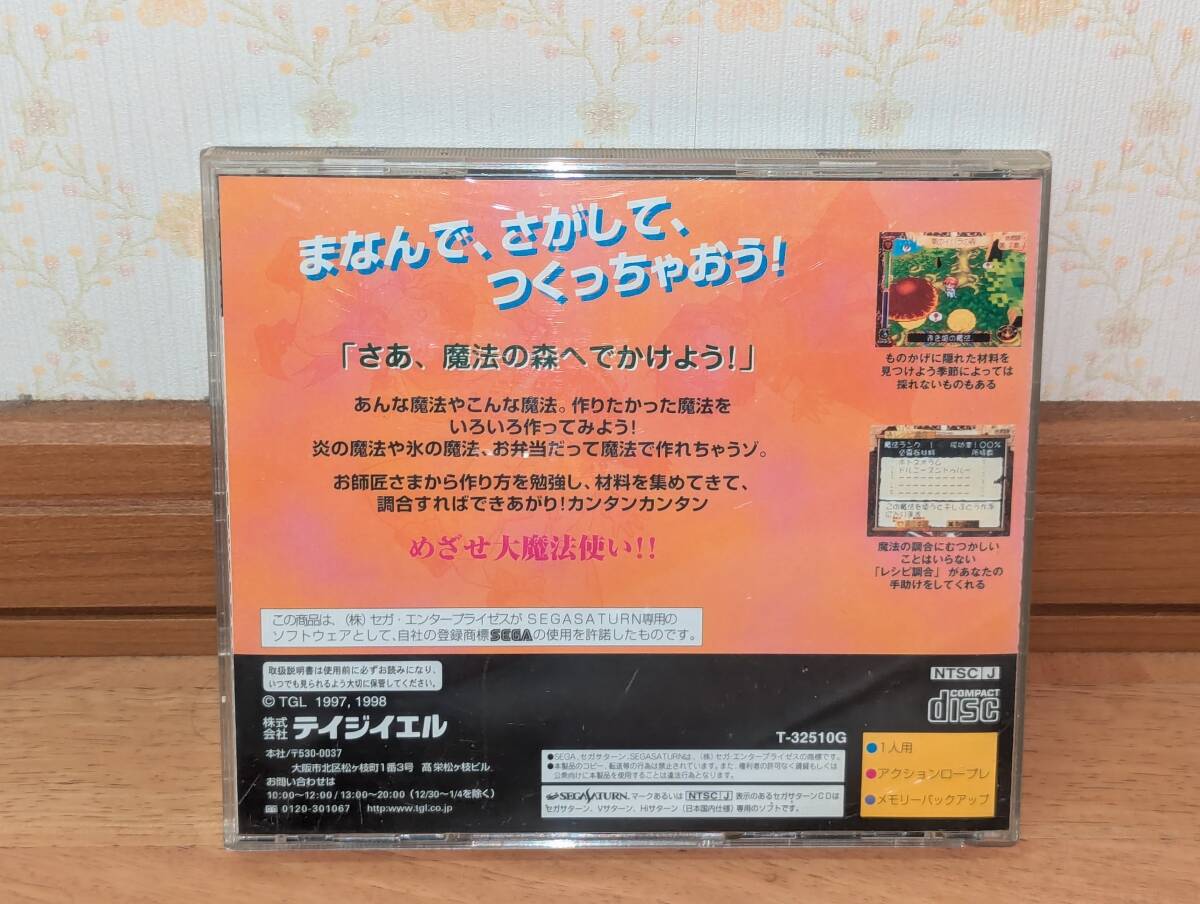 内容説明:TGLより1998年8月27日にセガサターン用ソフトとして発売されたロールプレイングゲーム。ファーランドシリーズを手がけた、TGLの魔法調合RPGで、プレイヤーは魔法使い見習の主人公になって、師匠のもとで修行し、魔法使いを目指すというう内容となる。ゲームの流れは魔法を覚える為、島中を歩き回って魔法材料を集めて調合することで進行していく。魔法の数は約70種、魔法材料は約150種が用意されている。