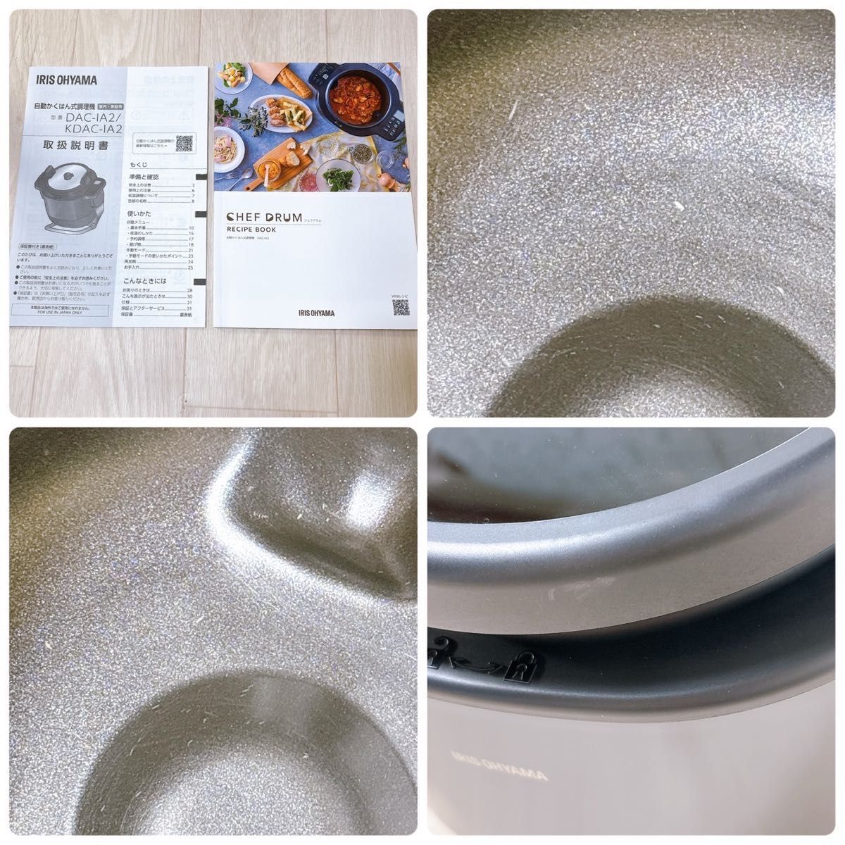 本体、内なべ、ふた、取扱説明書、レシピブック