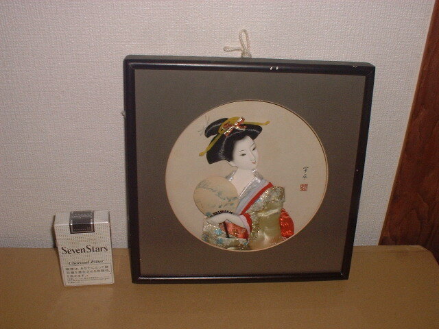 ★日本人形額 宇平の銘 木製額 美人画 遊女 芸者 花魁  レトロ