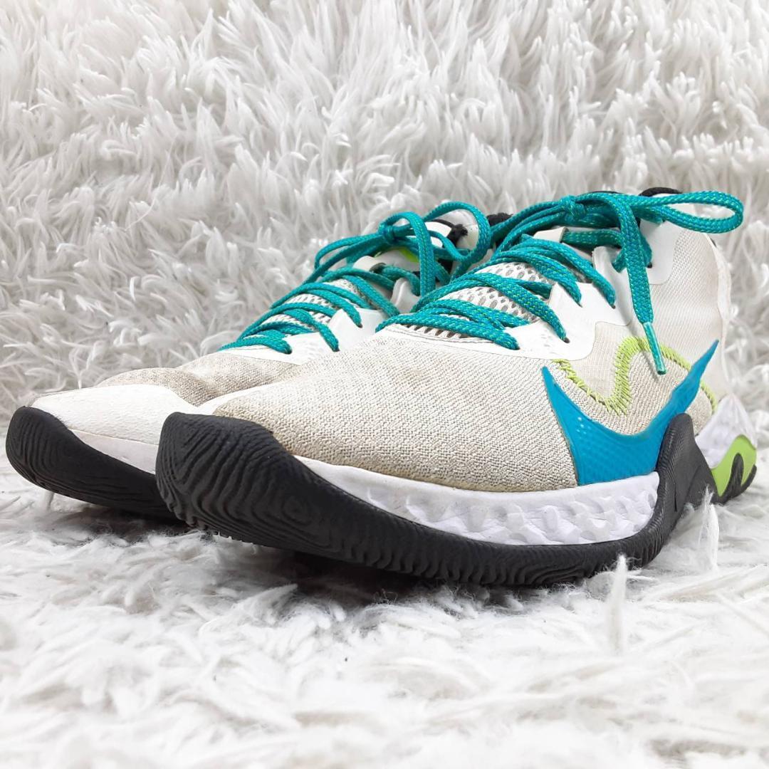 美品◎NIKE ナイキ Renew Elevate White Volt Light Blue Fury リニューエレベートホワイトボルトライトブルーフューリー バスケットシューズ バッシュ スニーカー ホワイト 白 スカイブルー 水色 CK2669-102