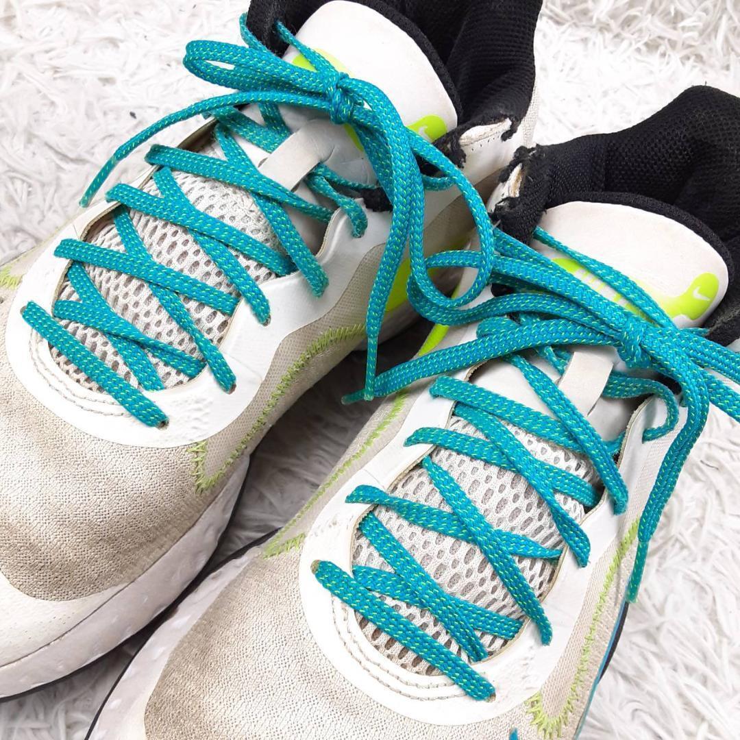 Nike Renewateの「白いボルトライトブルーフューリー」は、濃厚で安全なフィット感を提供する軽量のフープシューズに鮮やかなアクセントを適用します。