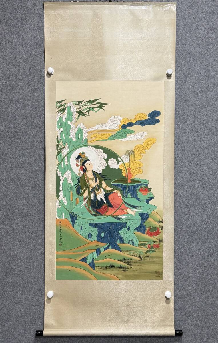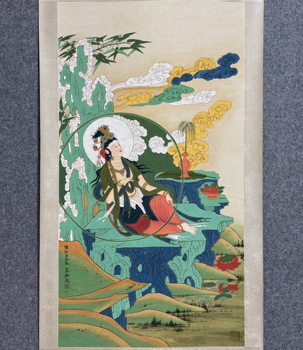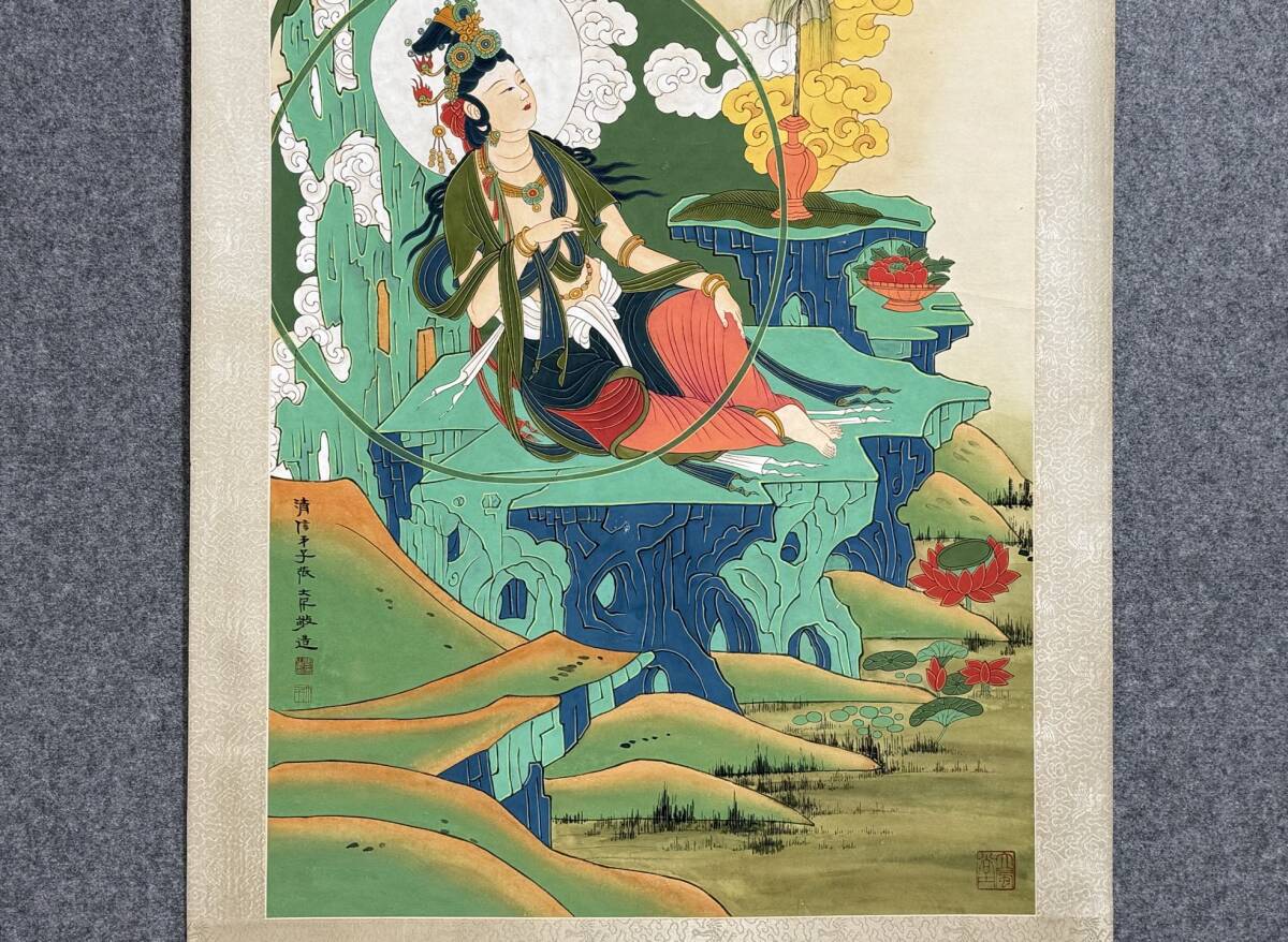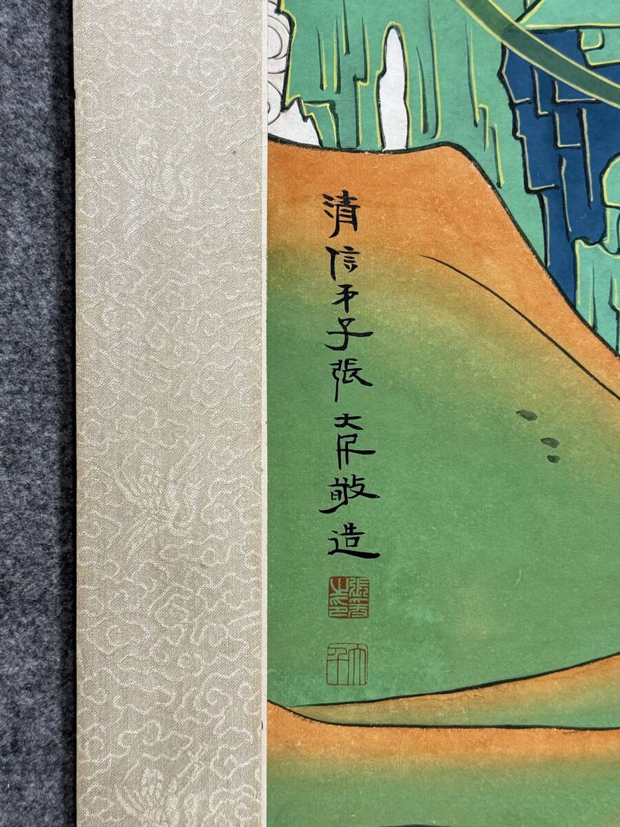『三希堂』 中国画 古美術 [張大千仏像図] 掛け軸 真筆逸品 肉筆保証 中心尺寸113X61.5cm ABC420