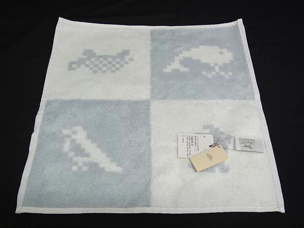 ■新品同様■ HERMES エルメス アニモー ピクセル カレタオル コットン100% ベビータオル ハンドタオル ハンカチ ブルー系 FM6685