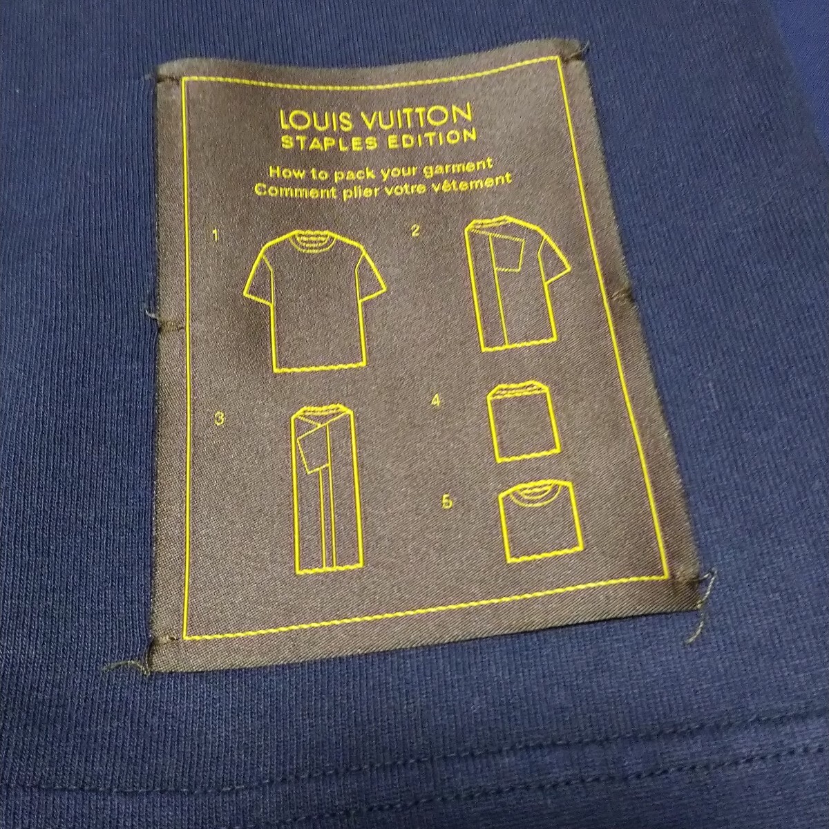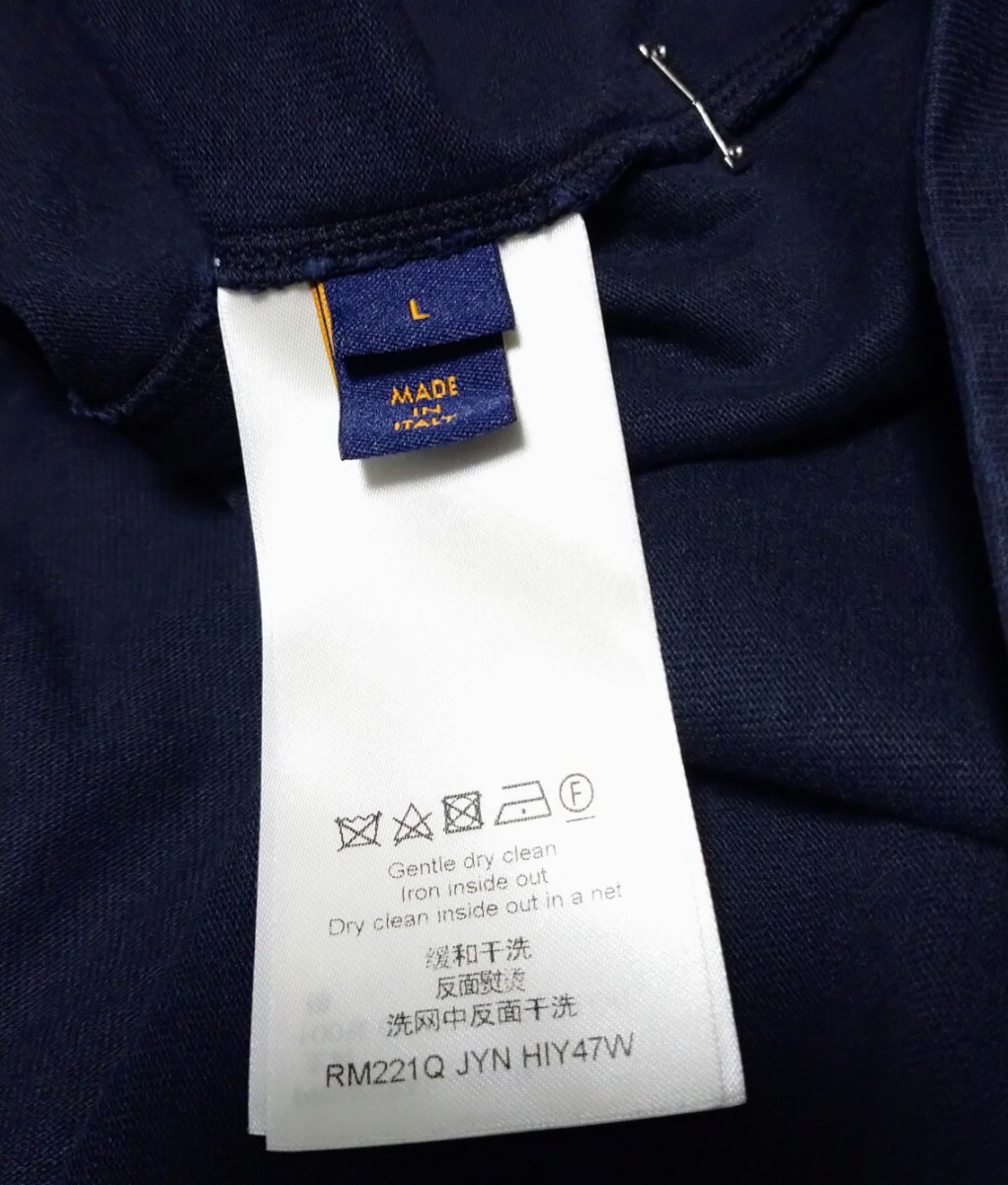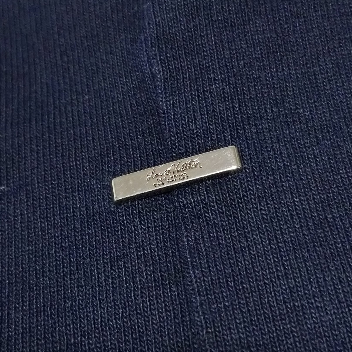 背面側の襟元にはルイヴィトンのロゴが裏返しになった生地が取り付けられています。