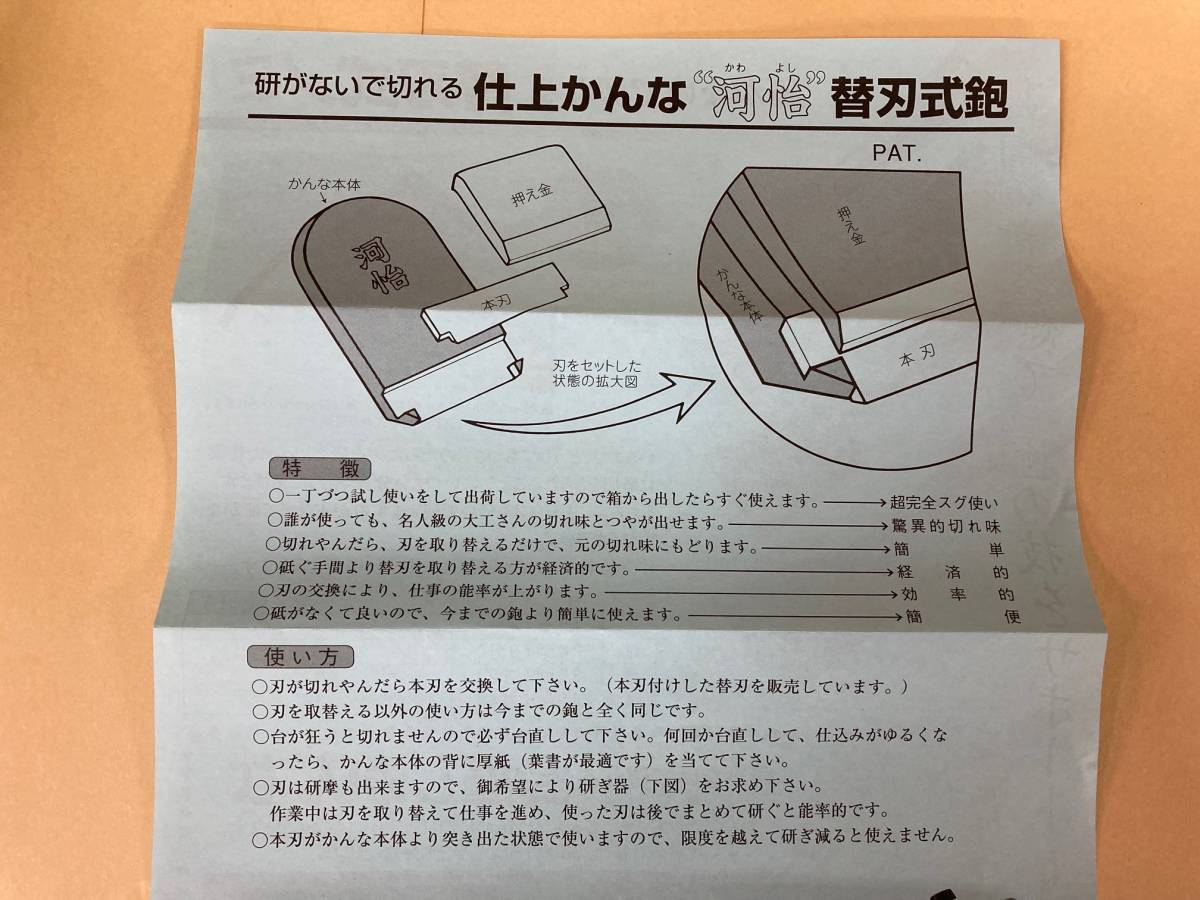 未使用#706■【河怡】河よし 替刃式かんな 鉋 本体 55mm    (かわよし カワヨシ)