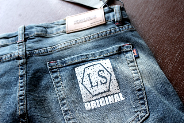 ダメージ加工とオレンジのスタッズ、ペイントロゴまで揃った