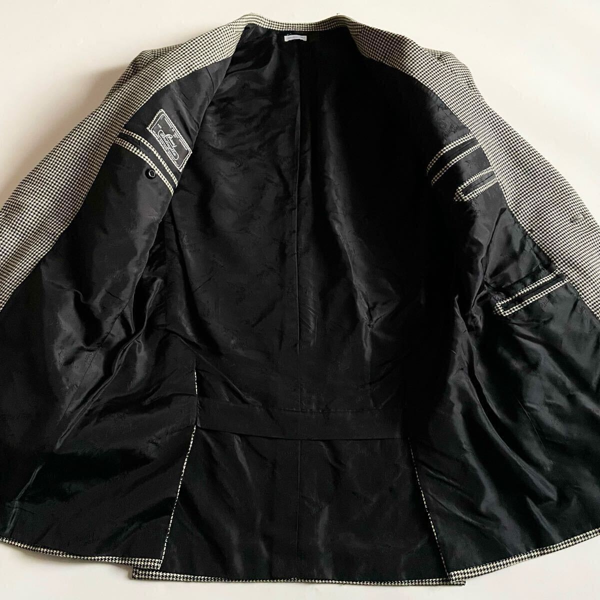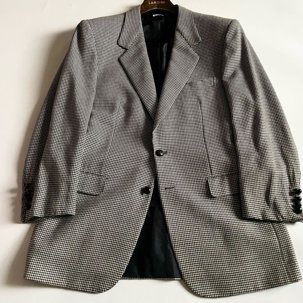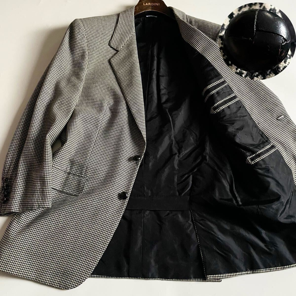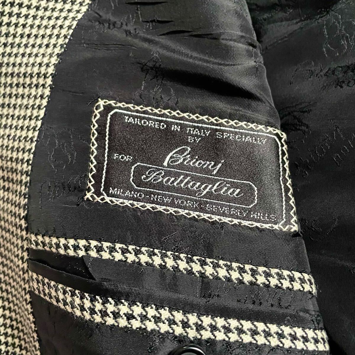 超高級ブティック別注│Brioni/ブリオーニ×Battaglia│カシミヤ素材 千鳥柄 くるみボタン│テーラードジャケット 50 裏地ロゴ総柄 イタリア製