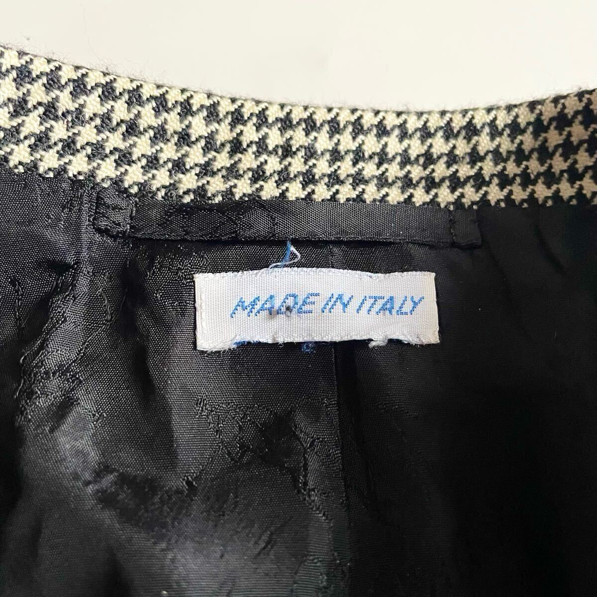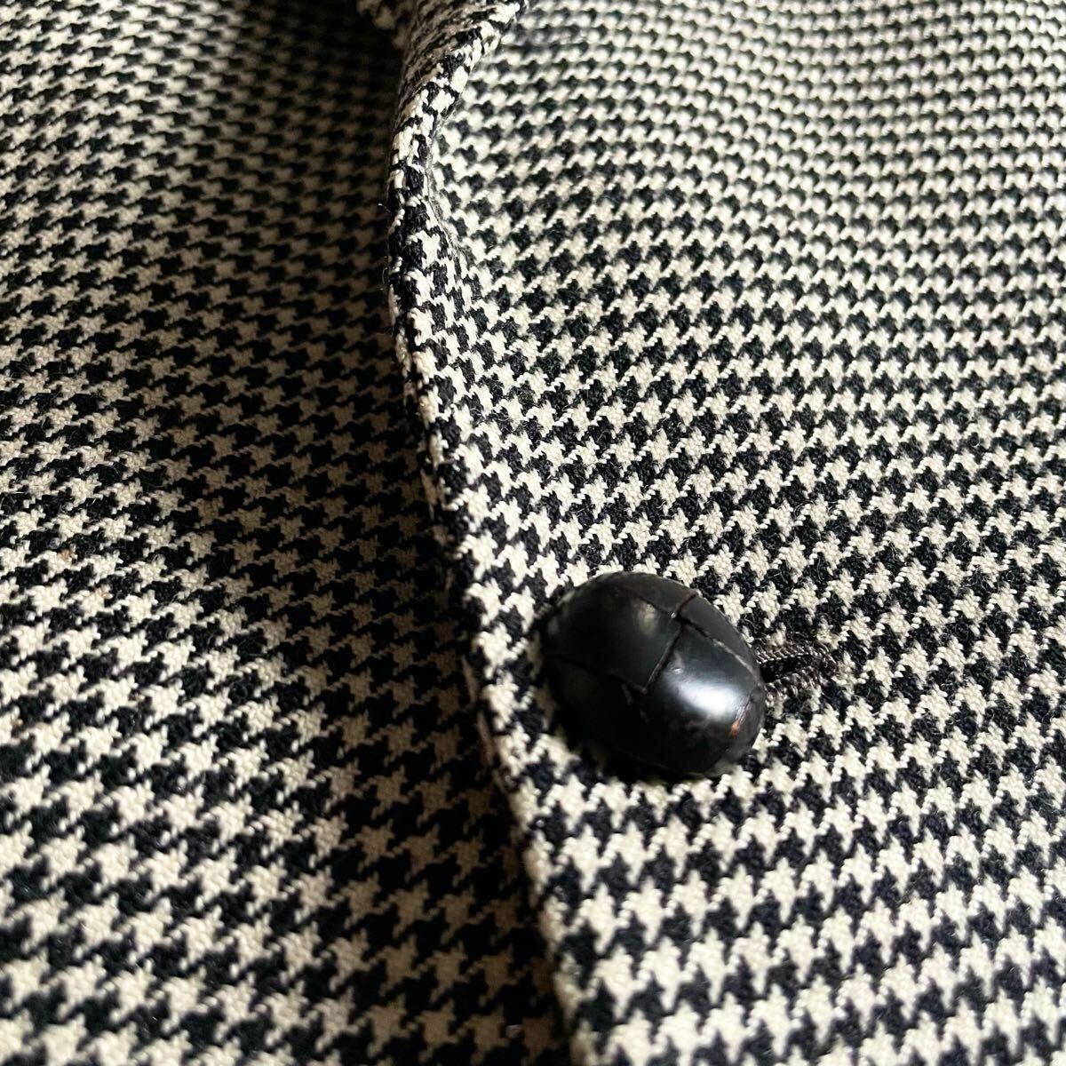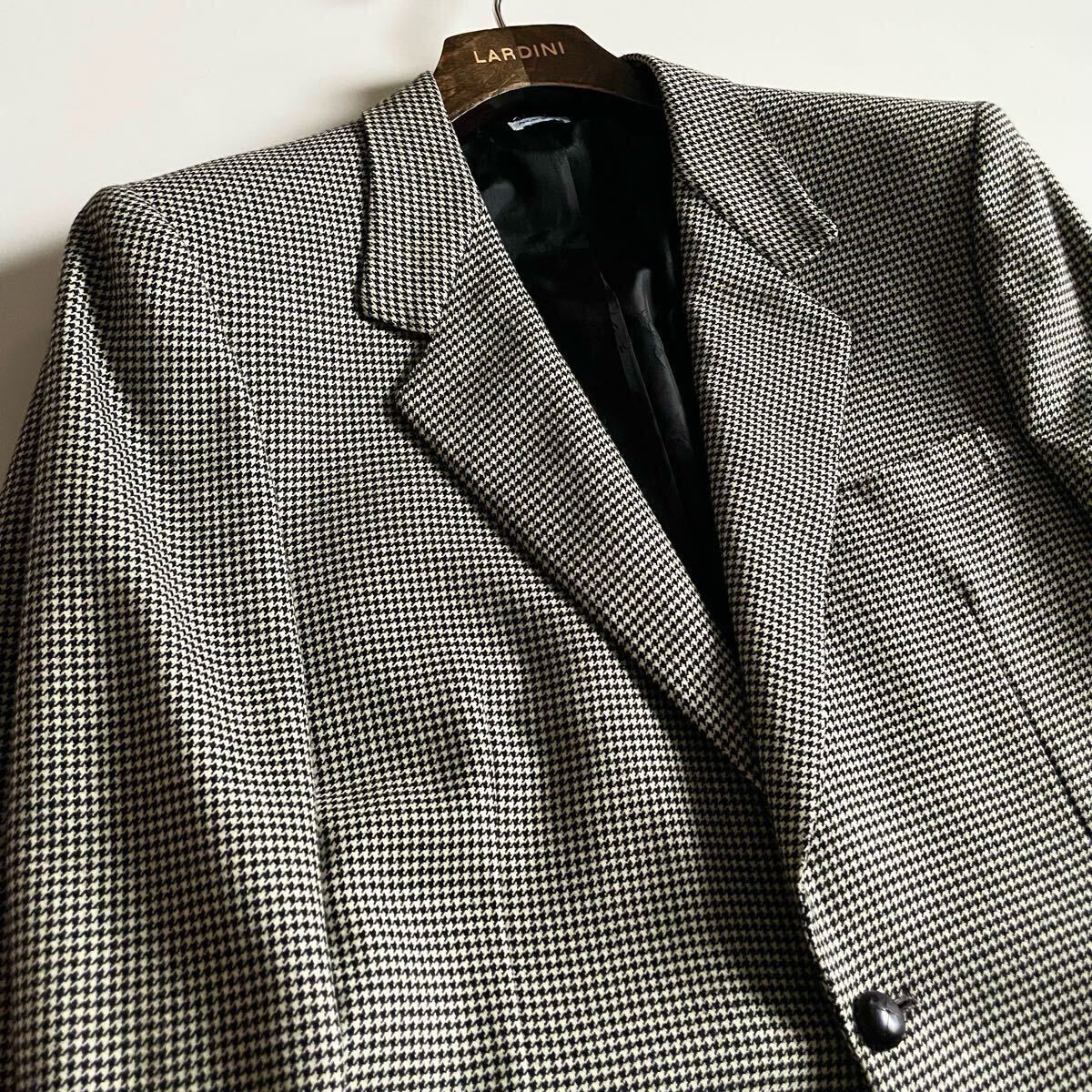こちらは、「Brioni(ブリオーニ)」と「Battaglia」による、超高級ブティック別注の特別なテーラードジャケットです。素材にはウール85%、カシミヤ15%を使用し、柔らかく滑らかな手触りと上質な保温性を実現。千鳥柄のデザインがクラシックな上品さを演出し、ラグジュアリーな印象を与えます。