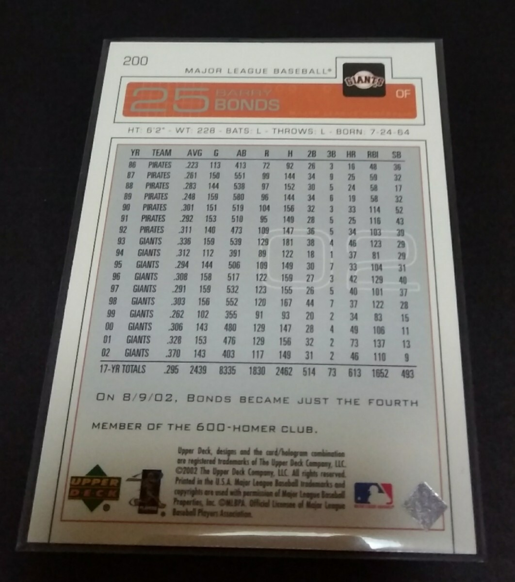 MLB 2003年upper deck バリー・ボンズ(ジャイアンツ) No,200。 Giants BARRY BONDS