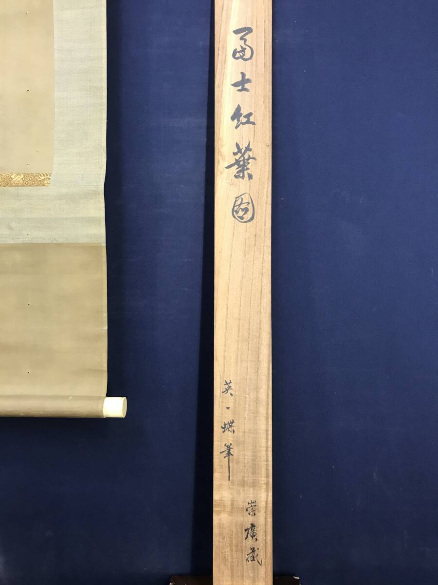 真作/英一蝶/富士紅葉図/秋景富岳図/富峰図/山水図/横物/極札付/掛軸☆宝船☆AJ-87