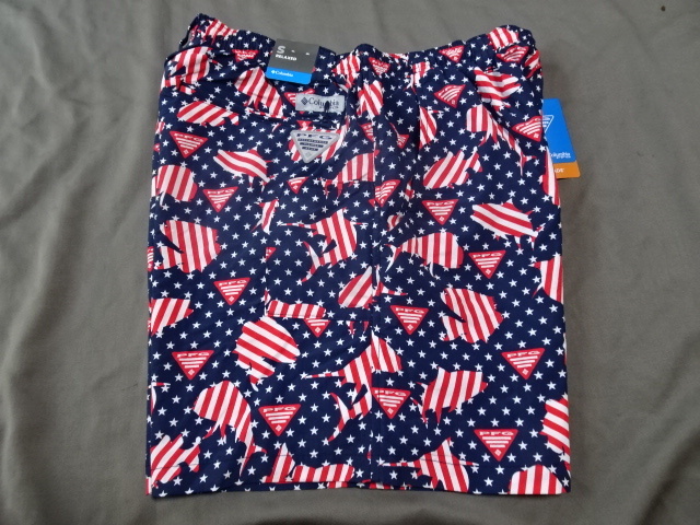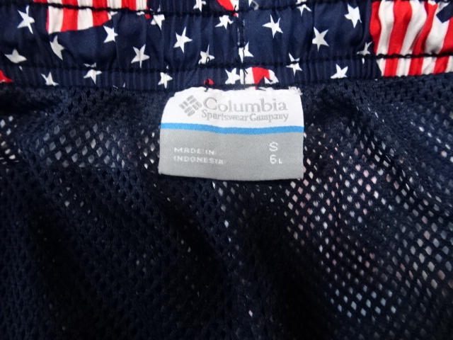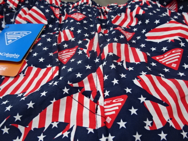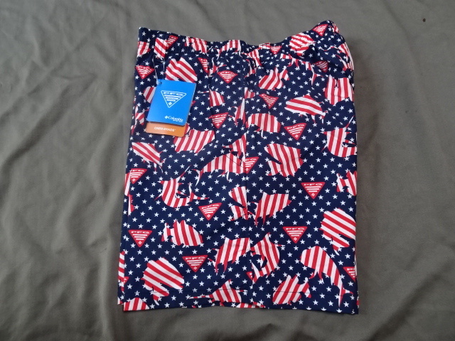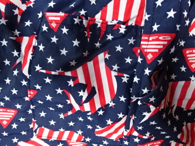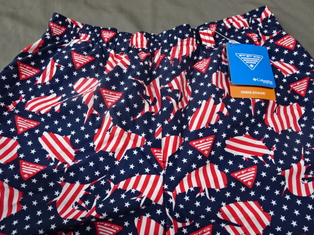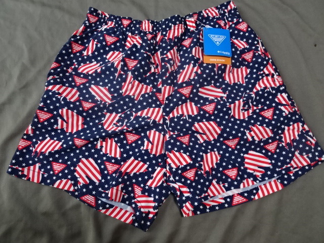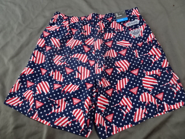 USA購入 激レア【Columbia PFG】【OMNI SHADE】アメリカ星条旗柄 FISHイラスト インナーメッシュ付スイムパンツUS Sサイズ