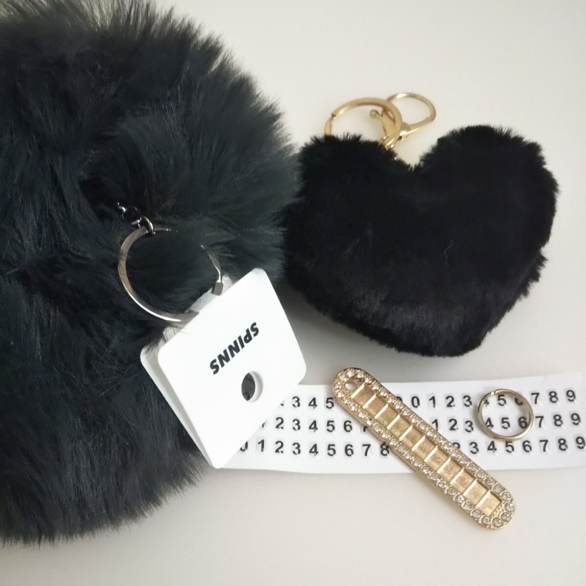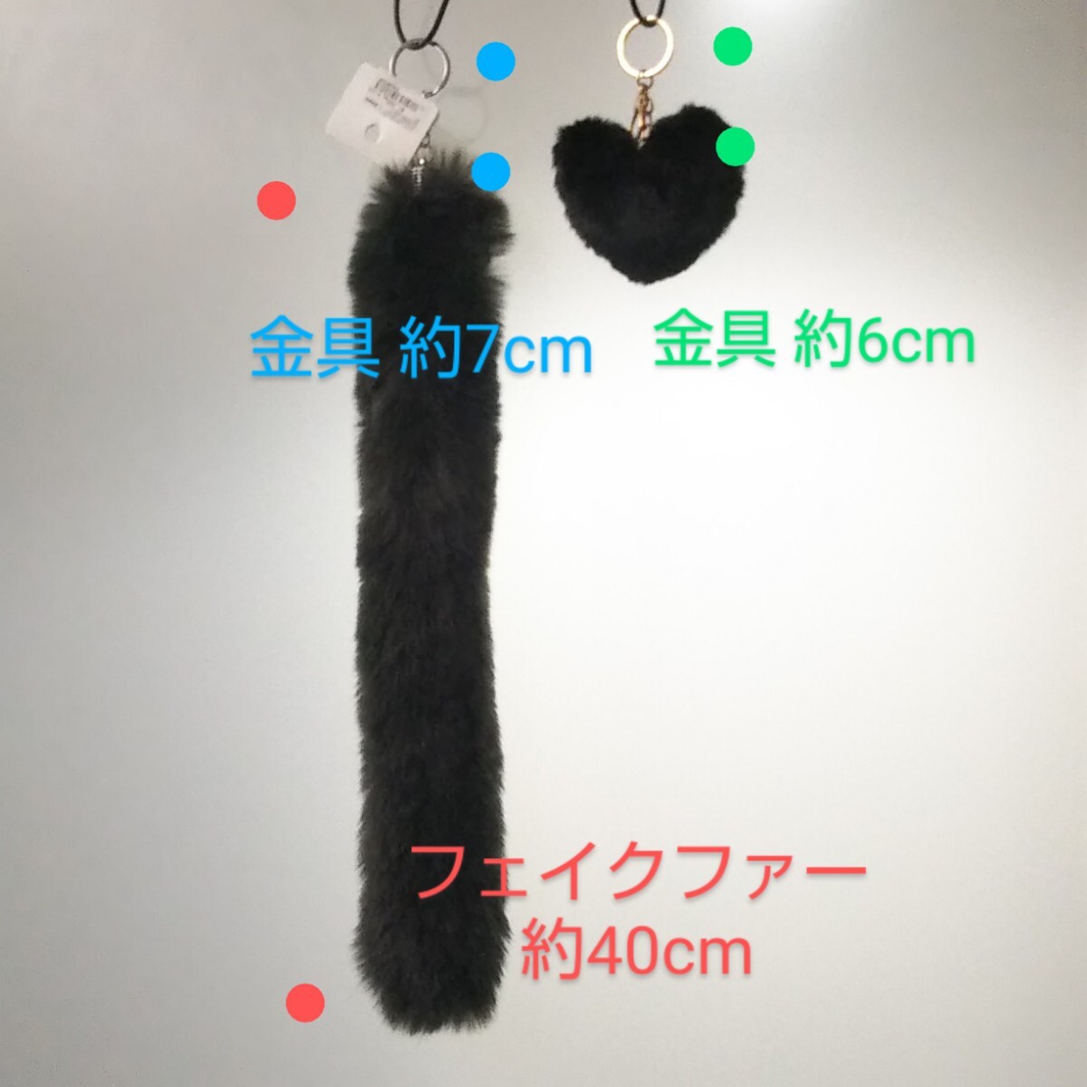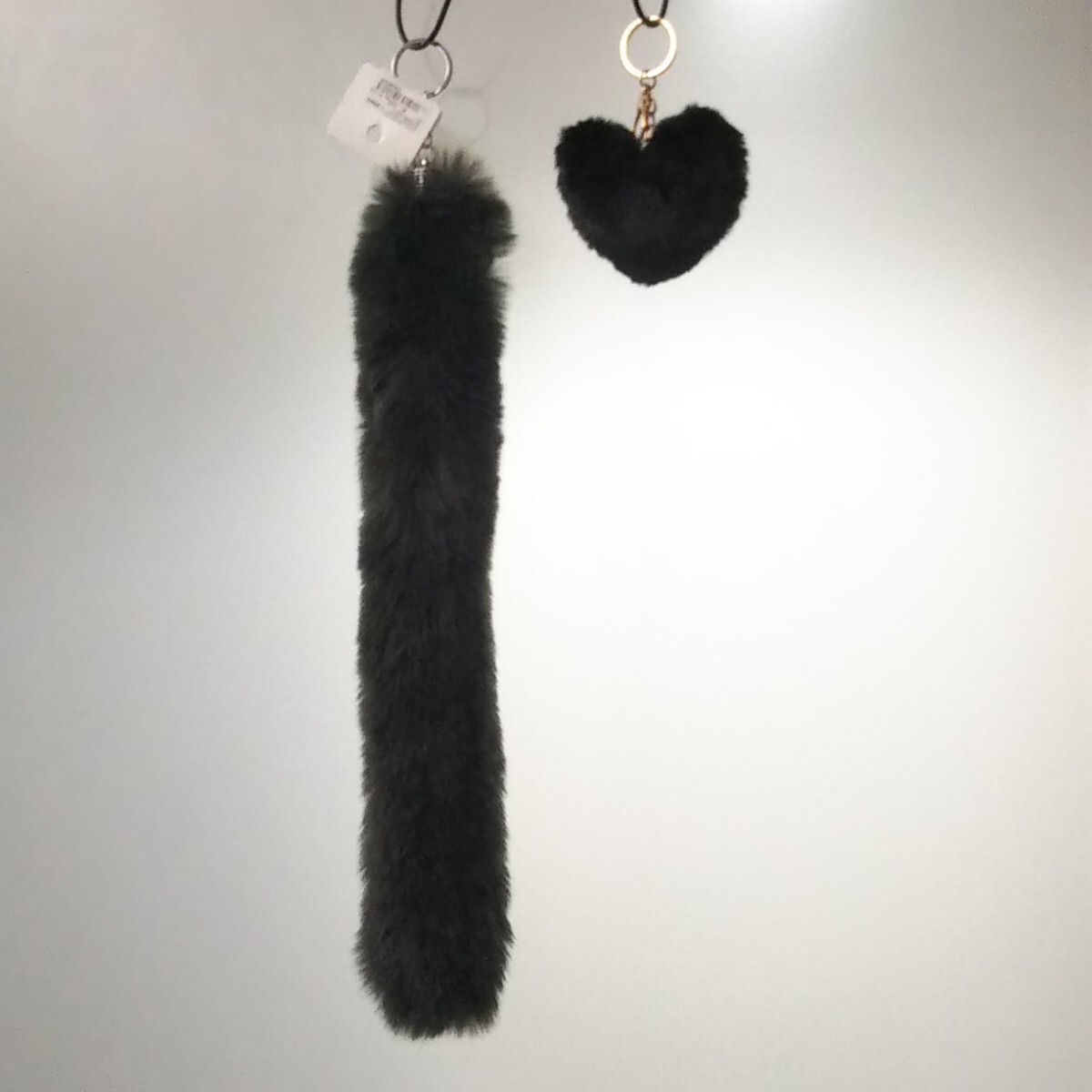 匿/ゆうパケット(mini)送込 【3点set 未使用】キーリング キーホルダー ハート シッポフェイクファー 40㎝ 黒系