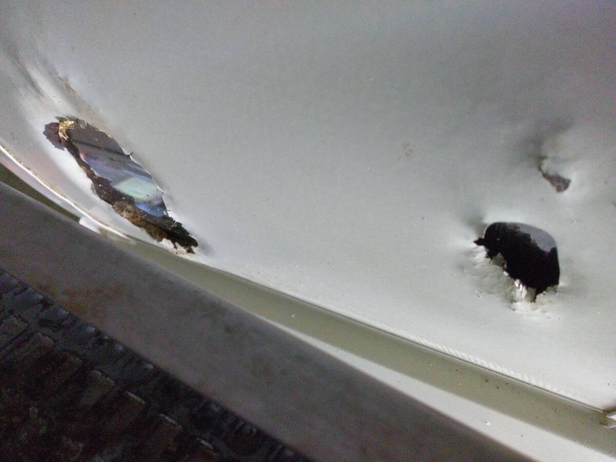 ◎ 揺動板横、籾殻排風口基部に破れがあります。(内側より補修痕あり)