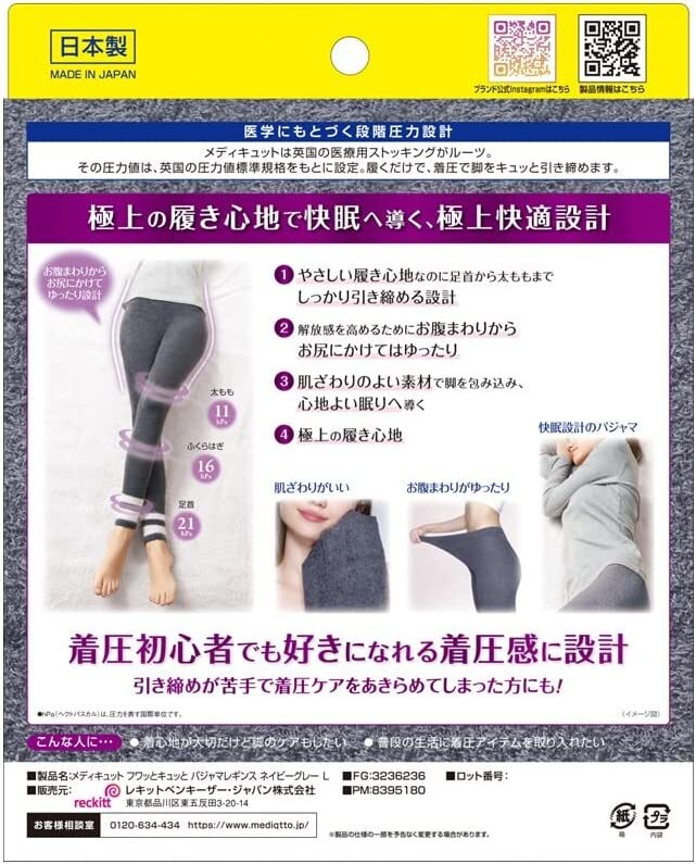 メディキュット フワッとキュッと パジャマレギンス ネイビーグレイ Lサイズ 着圧パジャマ フットケア