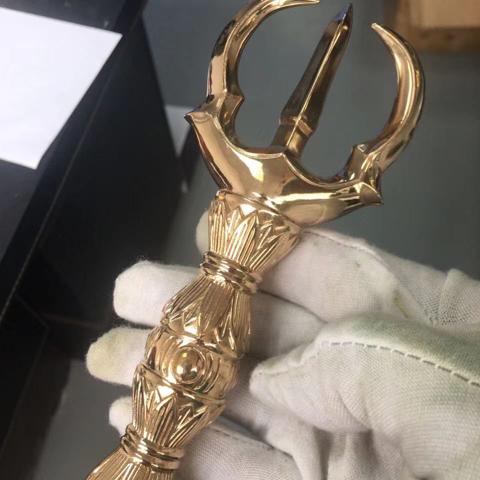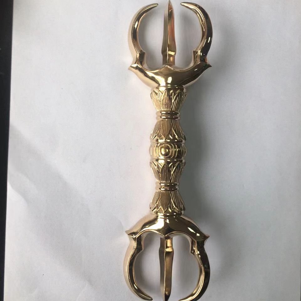 「密教法具 寺院用仏具」極上品 真言宗 三鈷杵 真鍮製磨き仕上げ 長さ 22cm