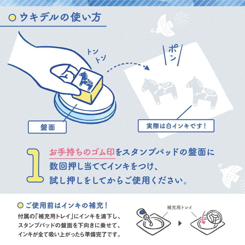 ※ウキデル専用補充インキと専用クリーナーは、クリアスタンプ・消しゴムはんこにはご使用できません。印面を傷める恐れがあります。