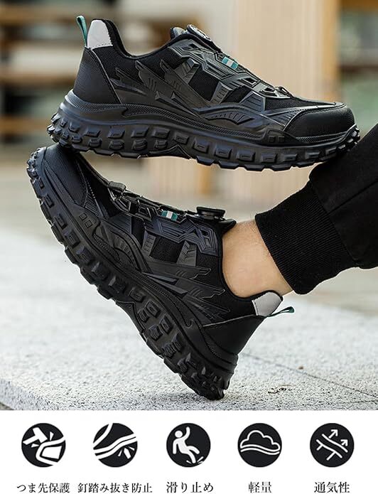 ダイヤル式安全靴 作業靴 踏み抜き防止 軽量 あんぜん靴 メッシュ 通気性 メンズ厚底 黒 樹脂先芯入り 耐摩耗 防滑サイズ:26.5cm